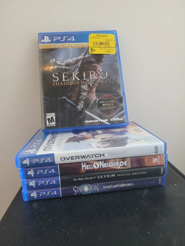 Selling PS4 games! - Sekiro Shadows Die Twice (Game of the Year Edition) $40 $15 each or all for $40 - Overwatch Origins Edition - Hello Neighbor - The Elder Scrolls V Skyrim Special Edition - Star Ocean Integrity and Faithlessness Cash or trade accepted Buy individual or bundle for a discount