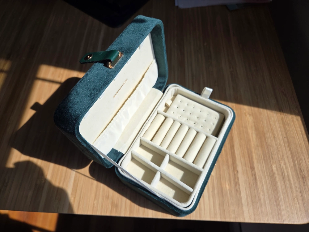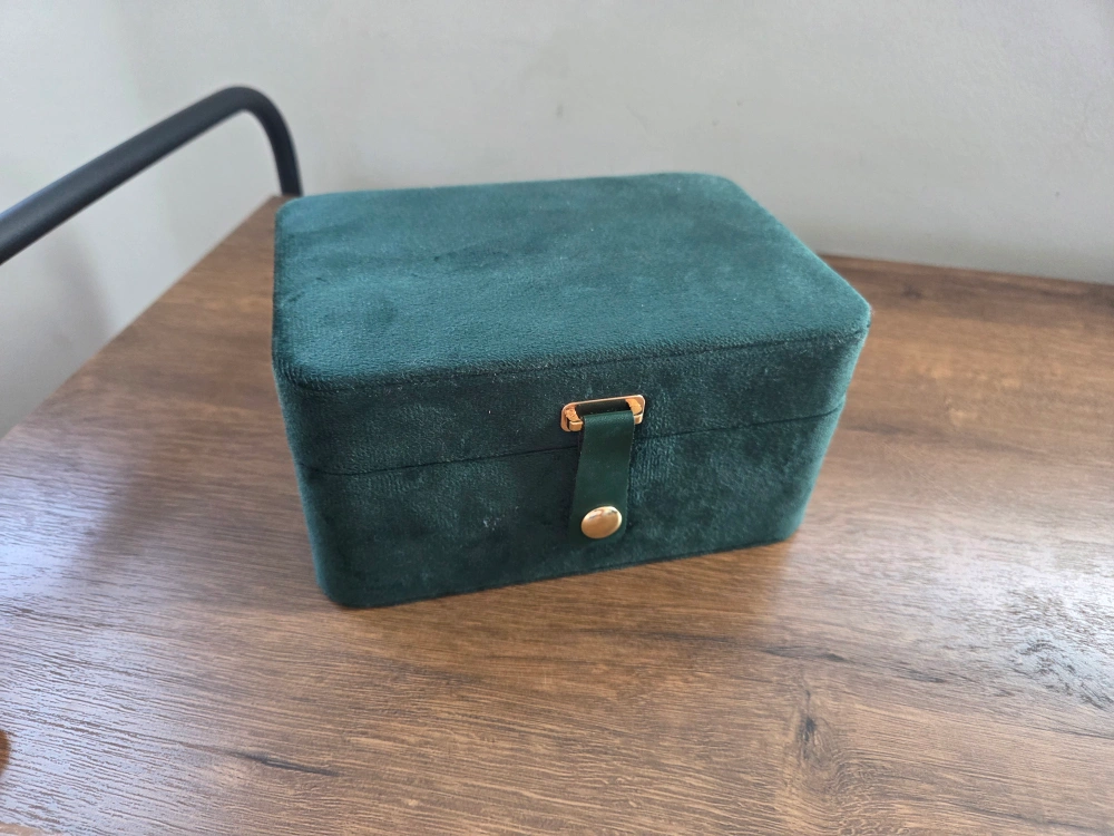 Lovely jewelry box, and really nice shade of green. Barely used. Only selling because I got a bigger one as a gift. Measurements: 6.3 x 3.1 x 3.4 inches (16 x 7.8 x 8.7 cm). Smoke and pet free home. Happy to offer discounts for bundled items!