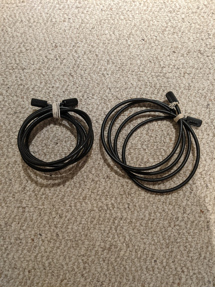 Two cable cables, each measuring just under 6'. Don't buy new cables for your cable modem when these ones are a fraction of the price. $1/ea or best offer. No lemon guarantee: if they don't work within 90 days of collection, I'll take back for a full refund. Willing to deliver locally.
