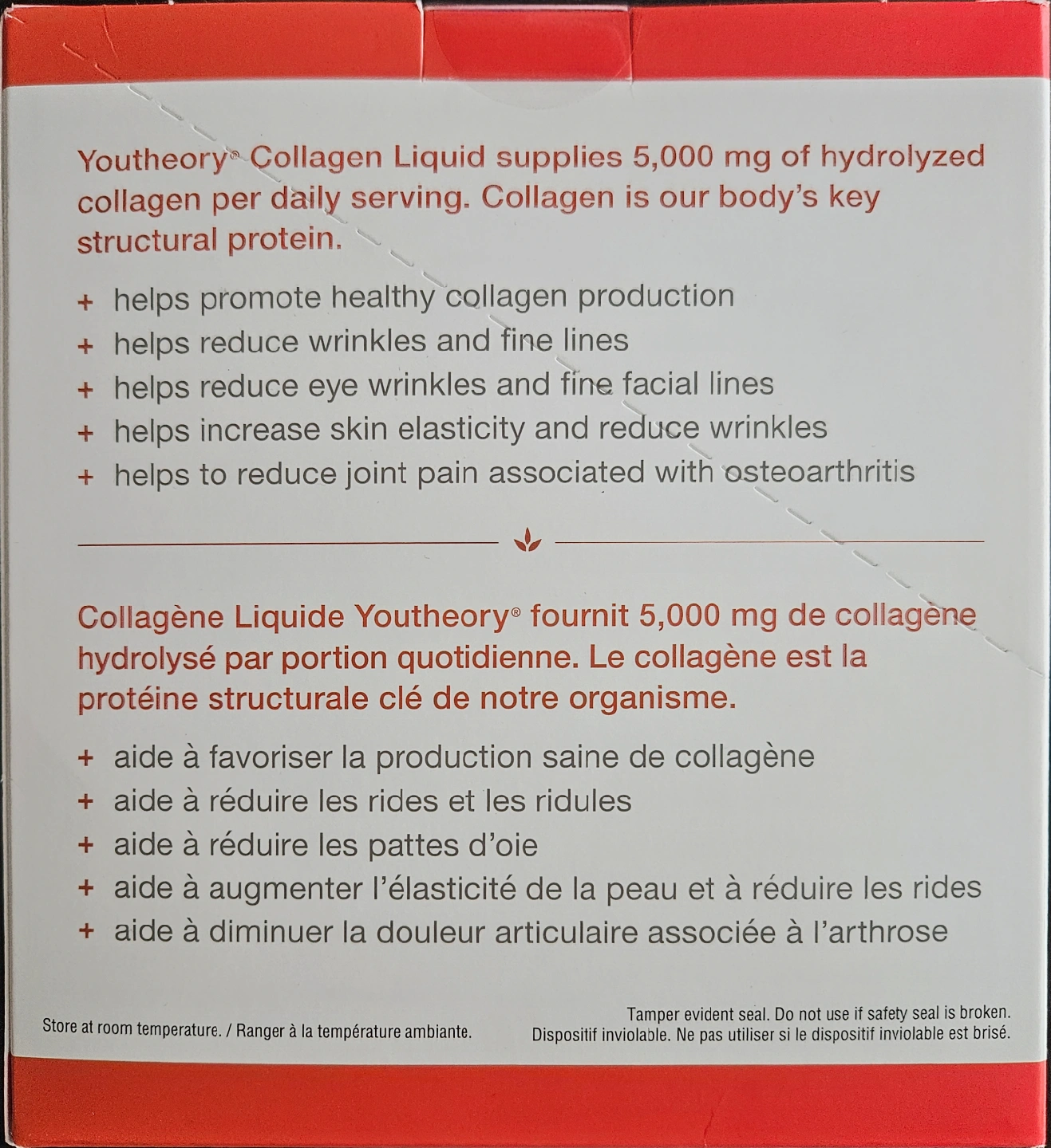 Youtheory Collagen Liquid in natural berry flavour! It supplies 5,000 mg of hydrolyzed collagen per daily serving. Collagen is our body's key structural protein that helps promote healthy collagen production, reduces wrinkles and fine lines, and helps to reduce joint pain associated with osteoarthritis. Expiry date is October 2026 Pick up only @ McMahon drive near North York Ikea