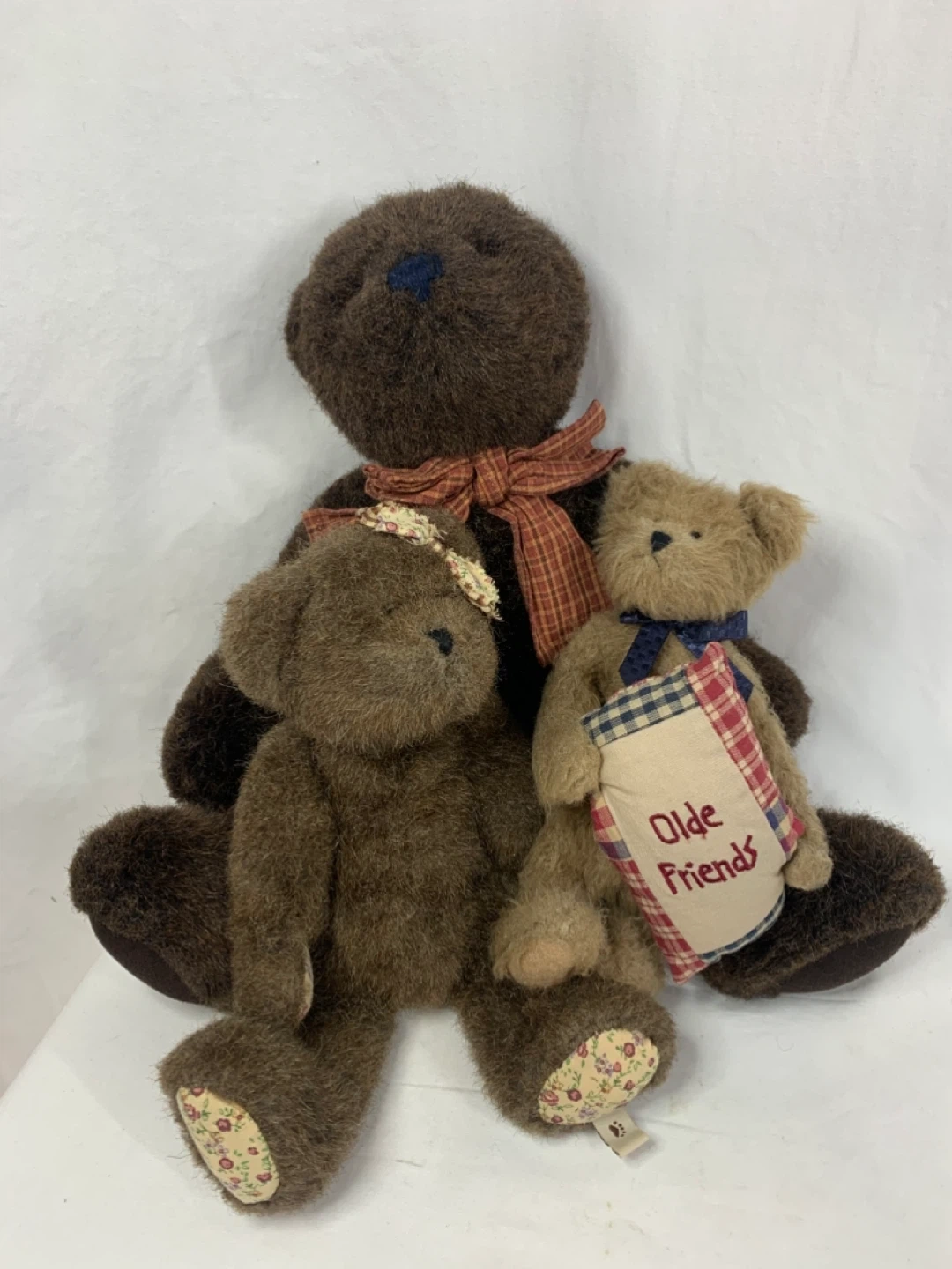 Selling a collection of Boyds Collection plush teddy bears! These charming bears are in great condition and ready for a new home. The smallest bear is holding a pillow that says “Olde Friends”. The tag on one of the bears says The Boyds Collection LTD 1988-2004.