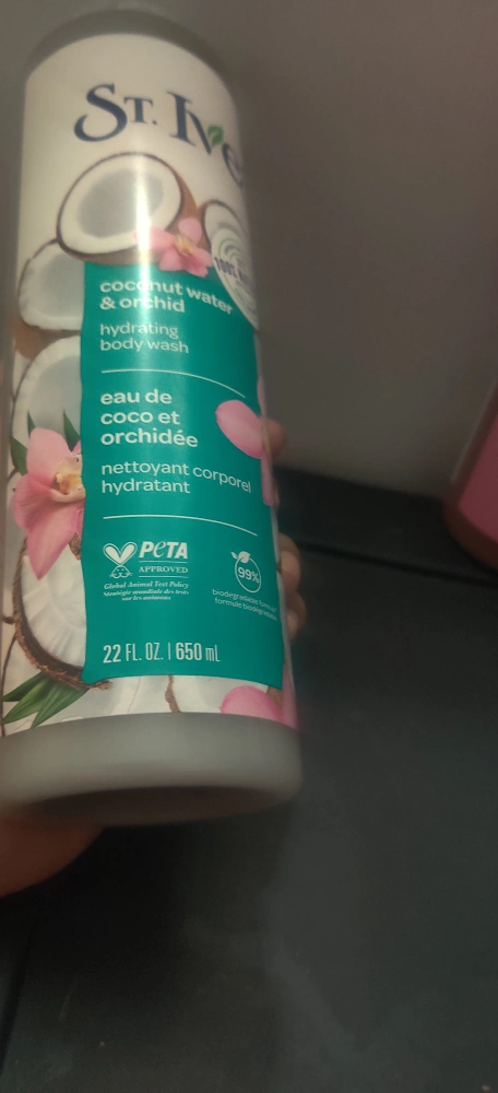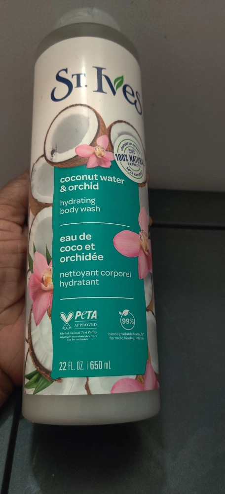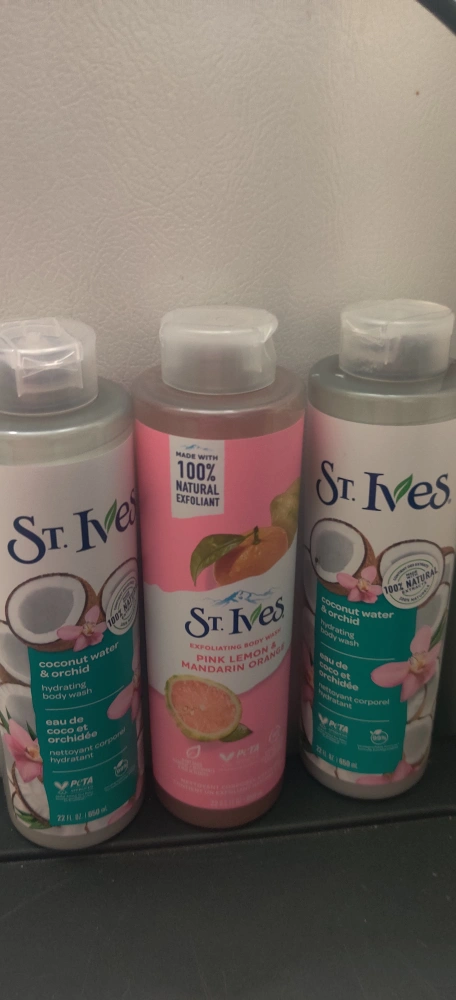 Selling 3 St. Ives Coconut Water & Orchid hydrating body wash. It comes in a 22 fl. oz (650 mL) bottle. This body wash is PETA approved and has a biodegradable formula