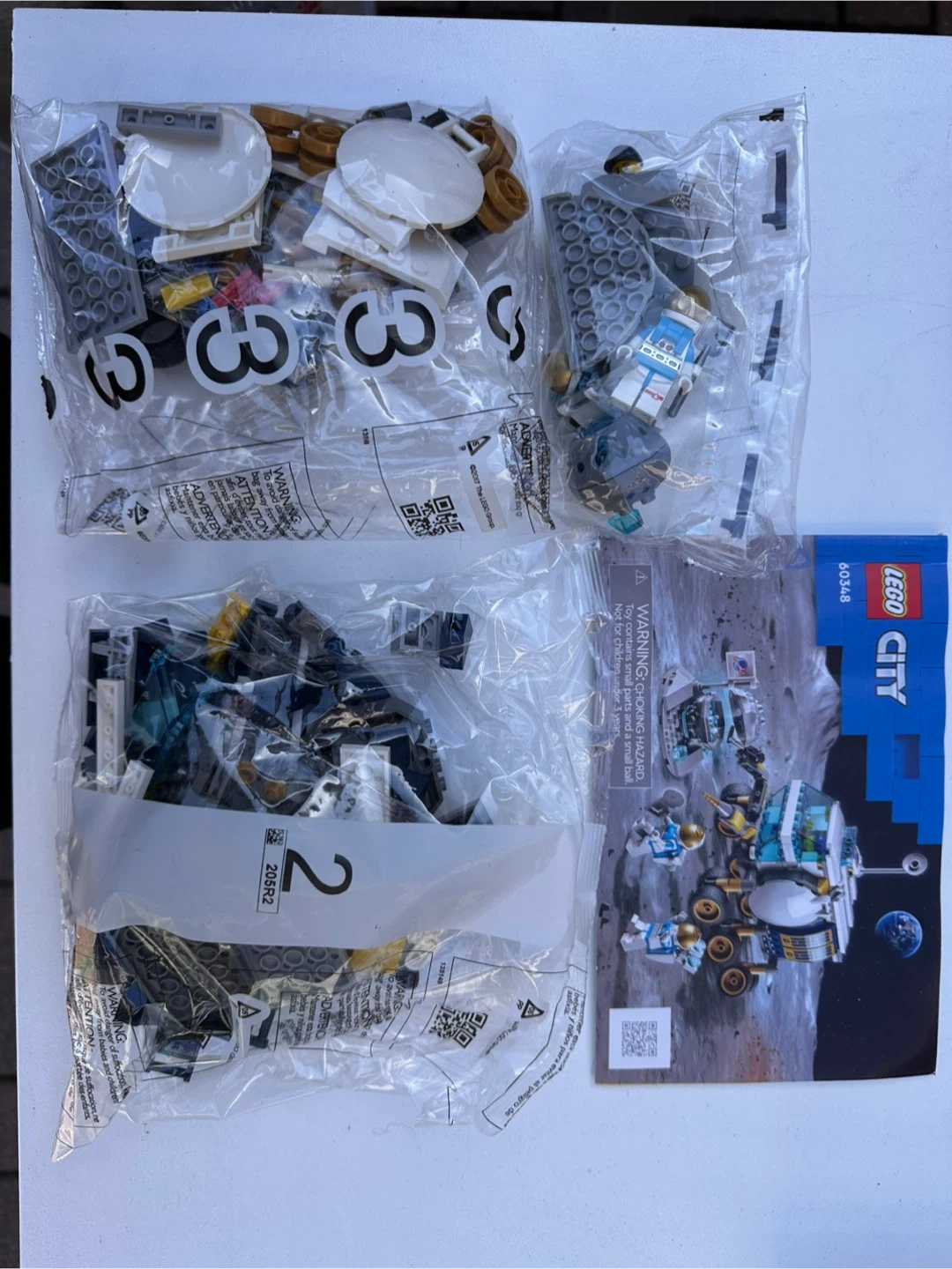 Selling a LEGO City Lunar Roving Vehicle set (60348)! The set appears to be complete with all the original bags and instructions. A fun build for space enthusiasts of all ages!
