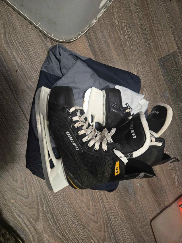 These skates are in excellent condition and ready for your next game or practice. Specifications: * Brand: Bauer * Model: 140 * Size: Men's 10. If the ad is up, the skates are available.