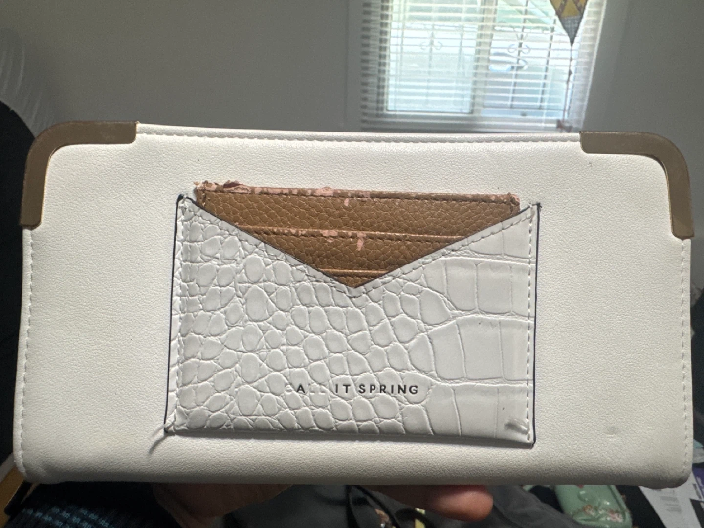 Selling a Call It Spring wallet in white. It has a zip around closure and gold-tone hardware. It is in good condition!