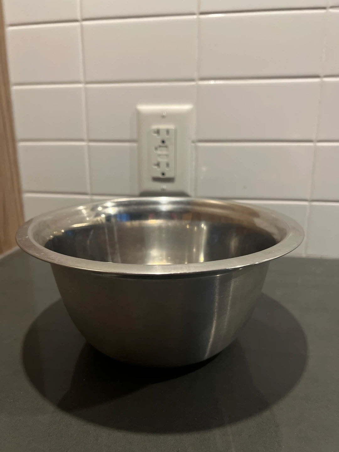 Selling a stainless steel mixing bowl. It's in great shape and ready for all your baking or cooking needs! It's a great kitchen essential