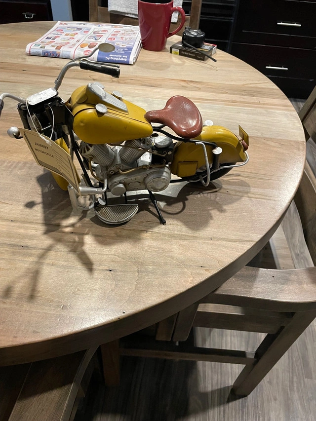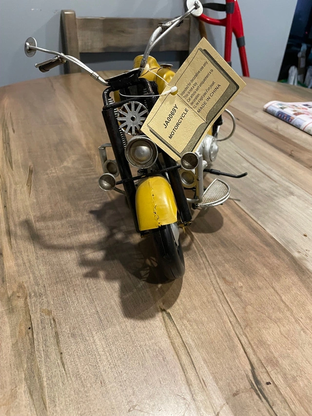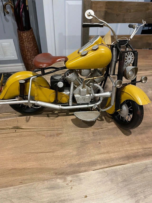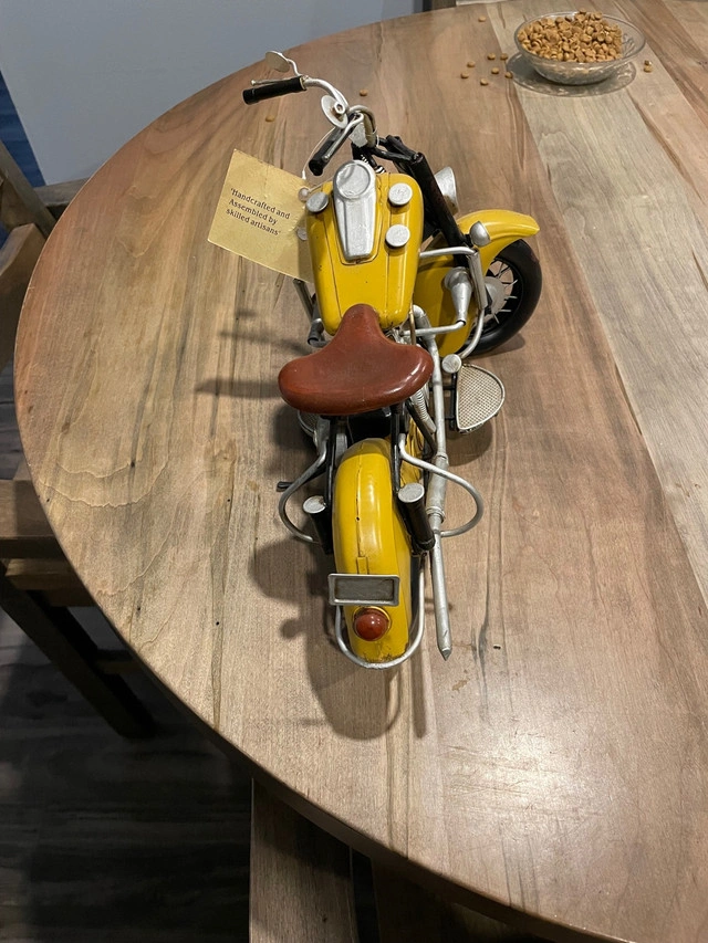 Perfectly crafted old school motorcycle lots of details 14 inches long and 8 inches tall. Let me know if you're interested!