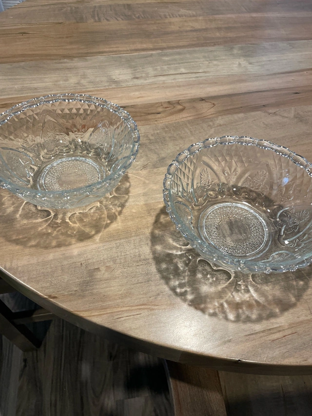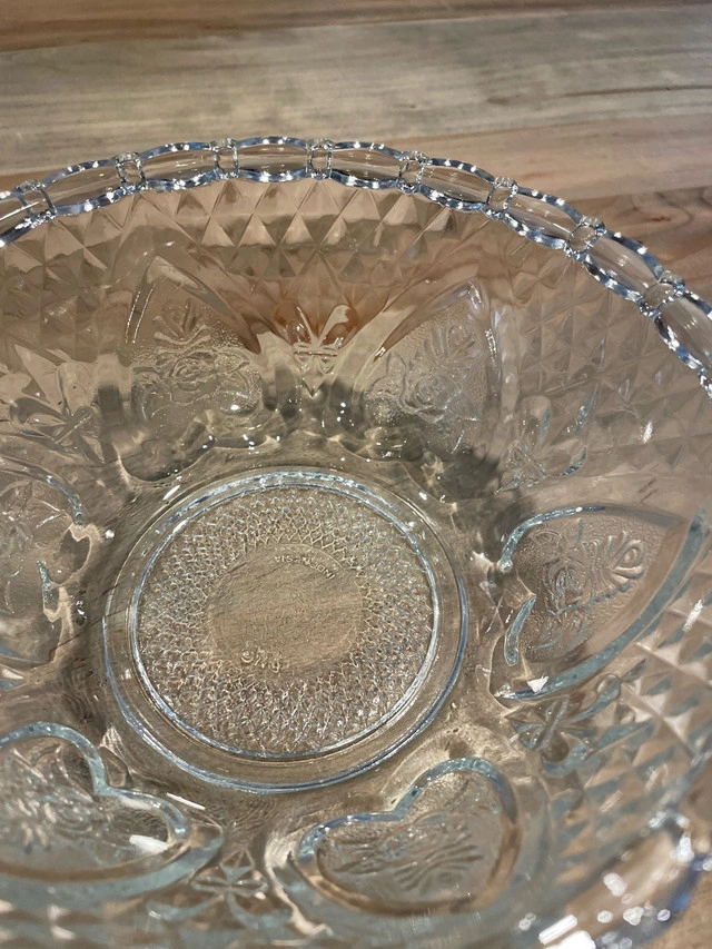 Set of 2 glass bowls beautifully designed with ribbed rim and hearts with flower as a full design. Condition: Used - Like new. More Info: Vintage, Antiques