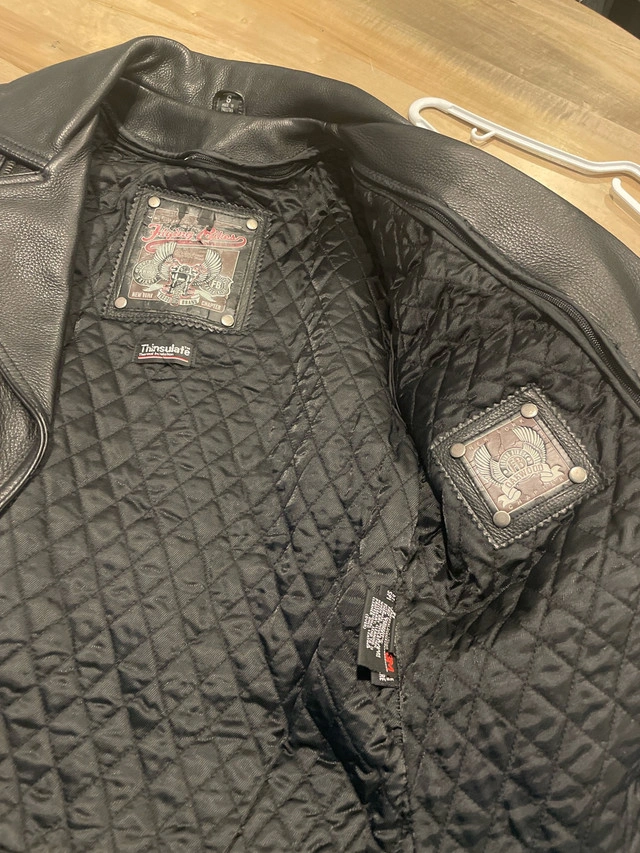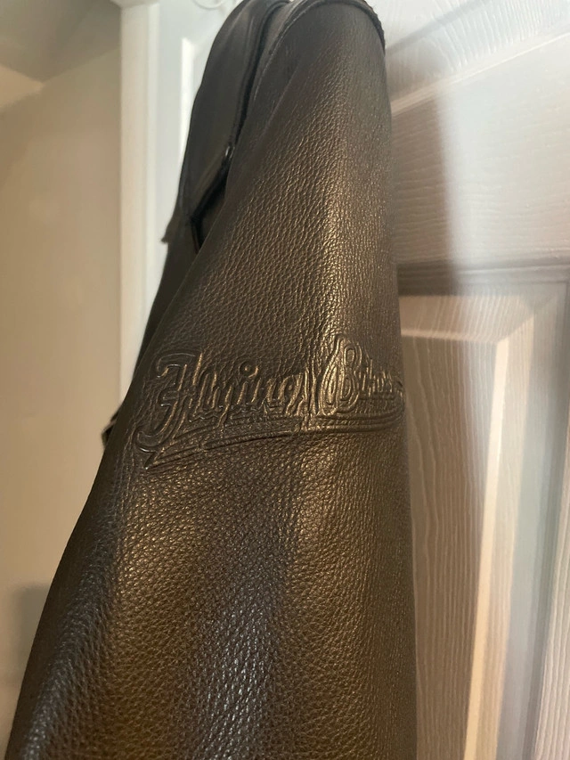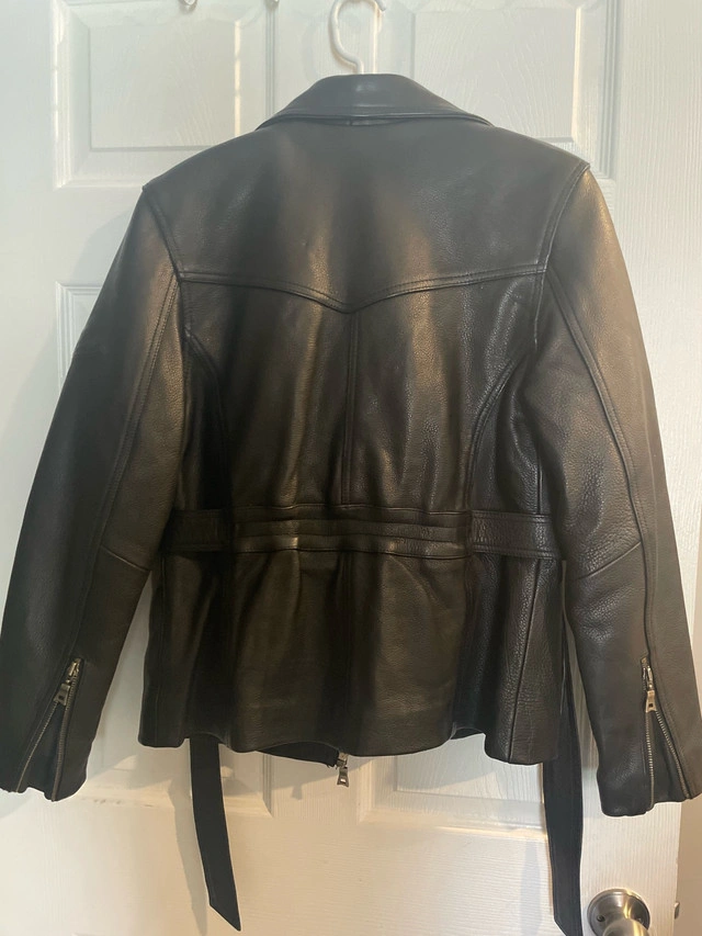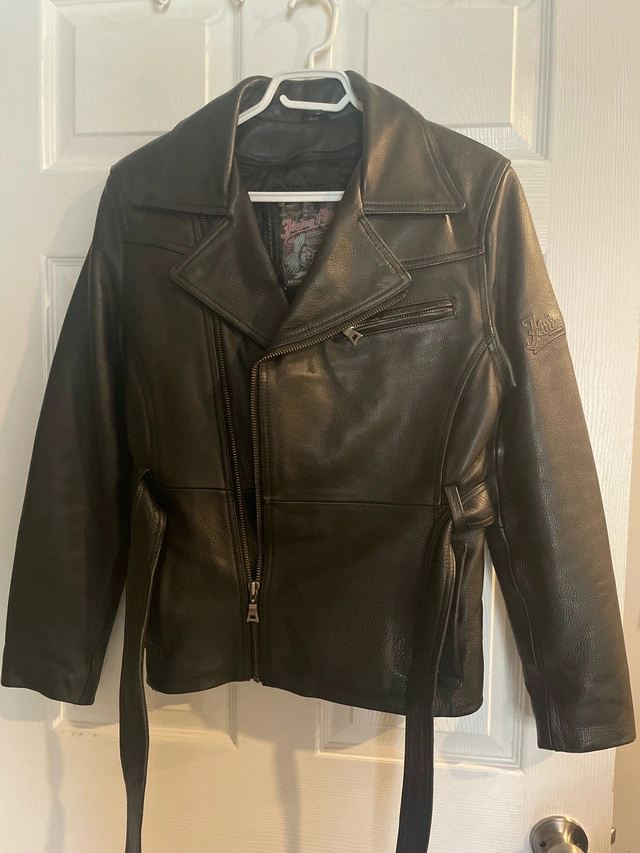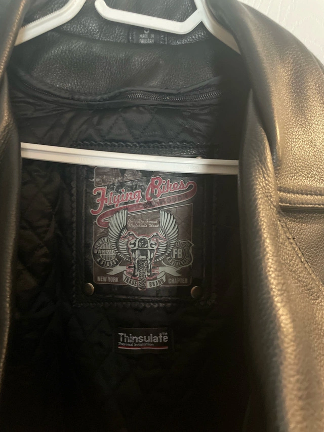 Selling a Flying Biker's genuine leather motorcycle jacket for women, offering both style and protection on the road. This pre-owned jacket features a classic biker design with an asymmetrical zip closure, belted waist, and detailed stitching. Key Features: - Brand: Flying Bikers - Material: Genuine Leather - Size: S - Design: Classic biker style with an asymmetrical zip closure and belted waist. - Lining: Quilted lining for added warmth and comfort. This jacket is in good condition. Similar leather jackets are typically listed between $100 and $250 on Kijiji. If this ad is up, the jacket is still available, ready for its next adventure!