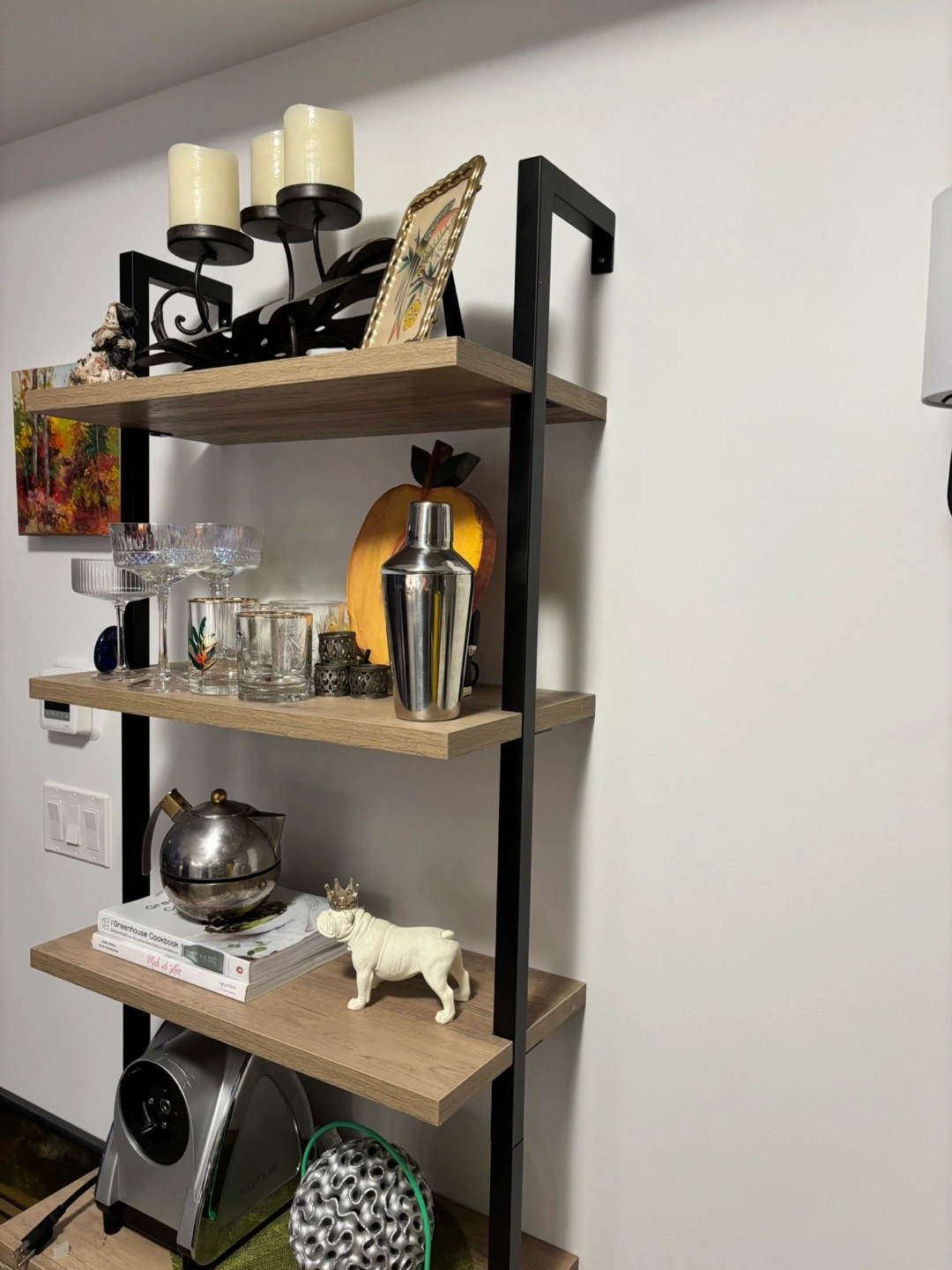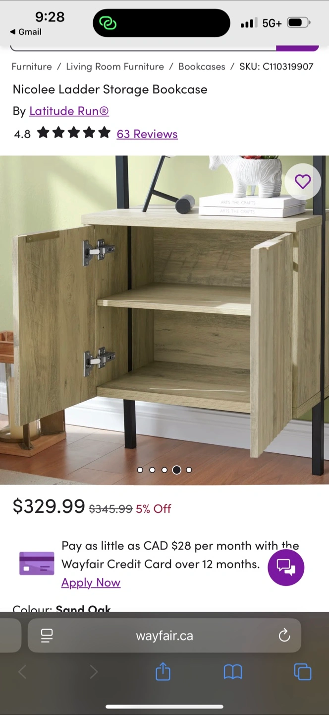 Selling a Latitude Run Nicolee Ladder Storage Bookcase in Sand Oak colour. It has a cabinet at the bottom for storage. Dimensions: - Each Shelf: 23.2 x 19.4 in - Cabinet: 23.2 x 14 x 18.8 in - Height: 72.4" Originally bought for $329.99