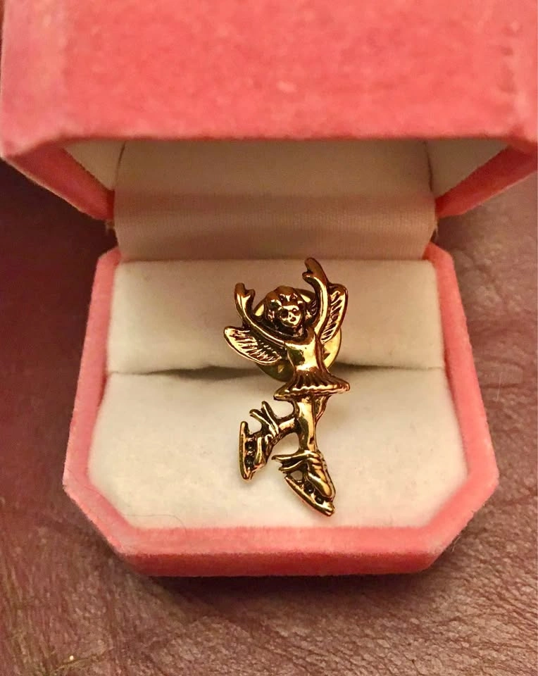 Small figure skater angel pin - gold coloured. Pick up in Richmond Hill (Bayview/Elgin Mills) or Riverdale (Broadview/Gerrard).