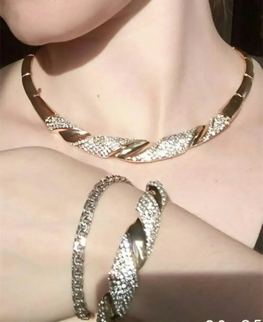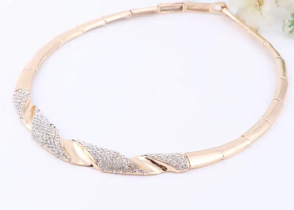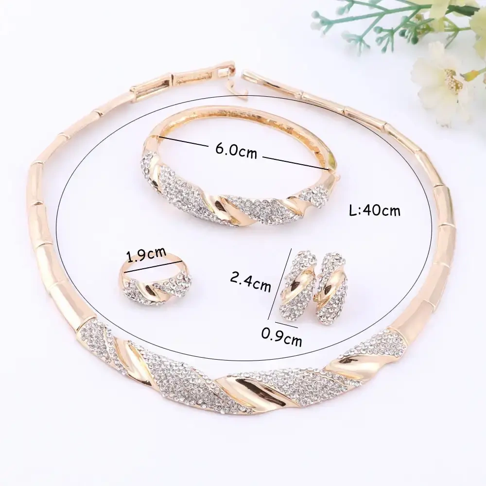 Necklace, Ring And Bracelet With Earrings Color: Gold with White Stones Discounts available if you buy more items. More items to sell in profile!