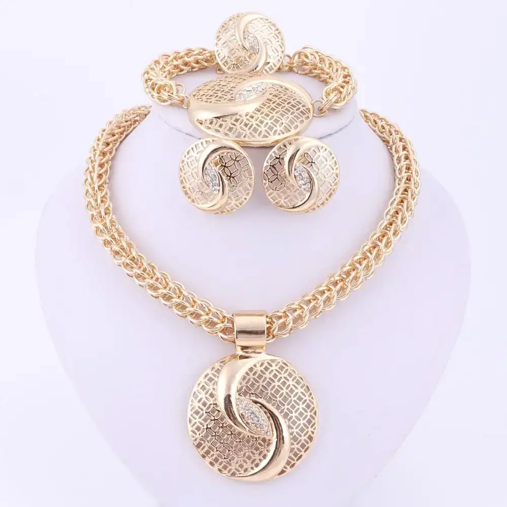 Gold with White Stones Thick Chain Jewelry Set Includes Necklace, Bracelet, Earrings & Ring Discounts available if you buy more items. More items to sell in profile!