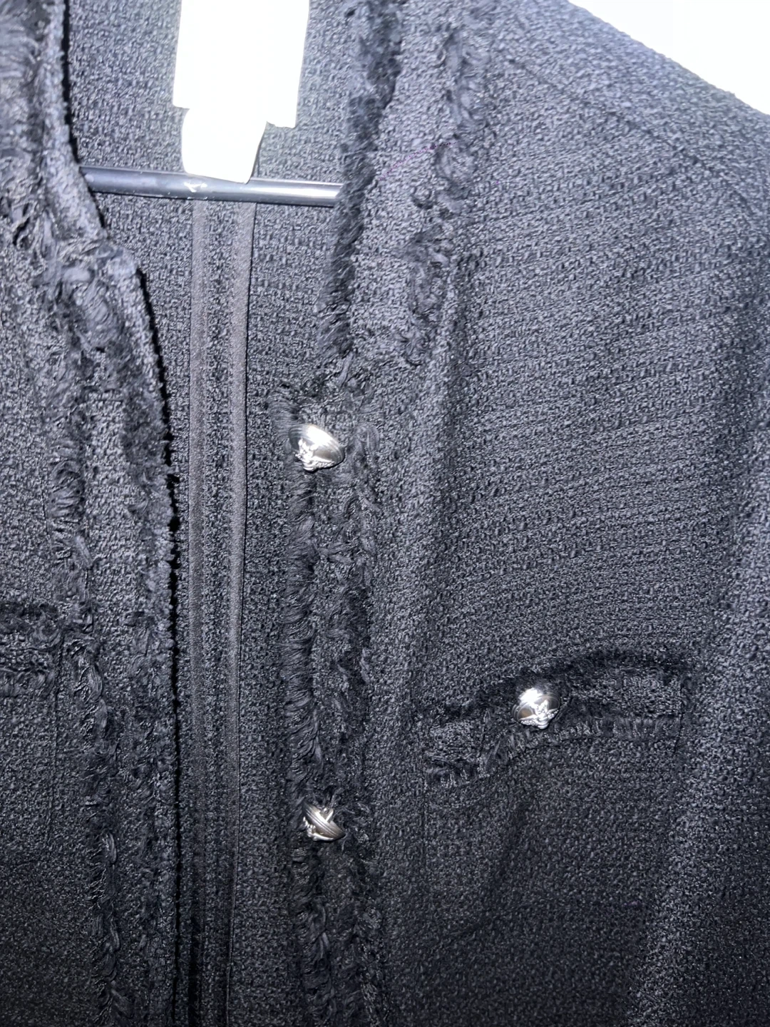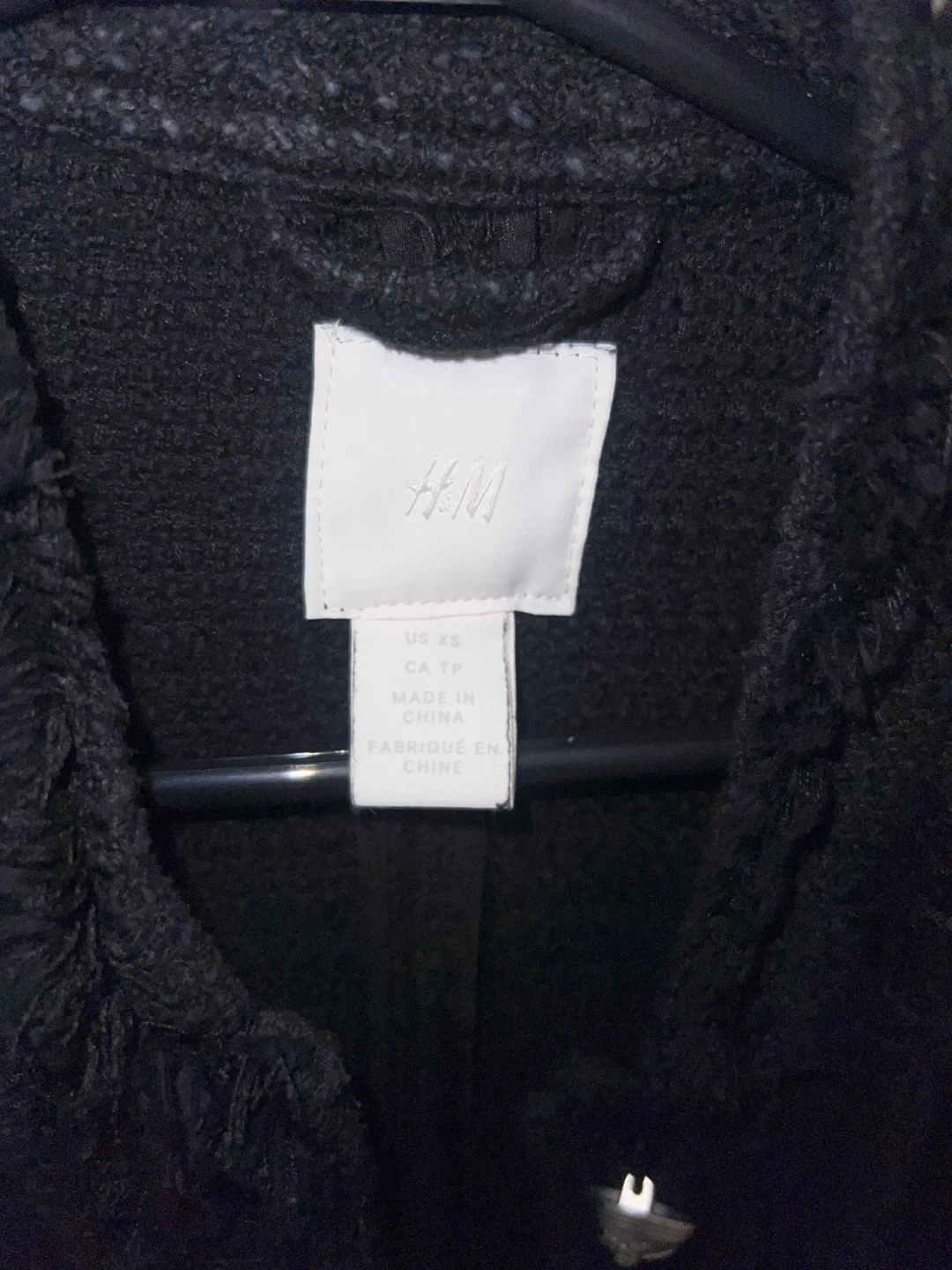 It's in great condition. The jacket features a classic tweed texture and stylish button details.