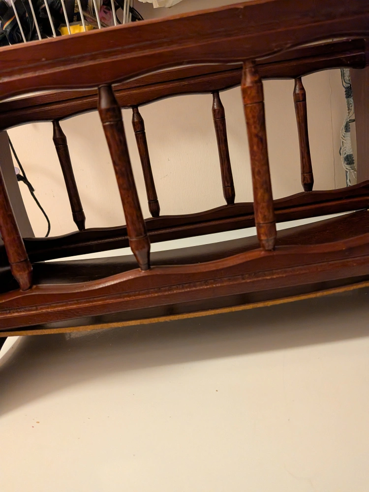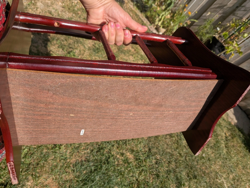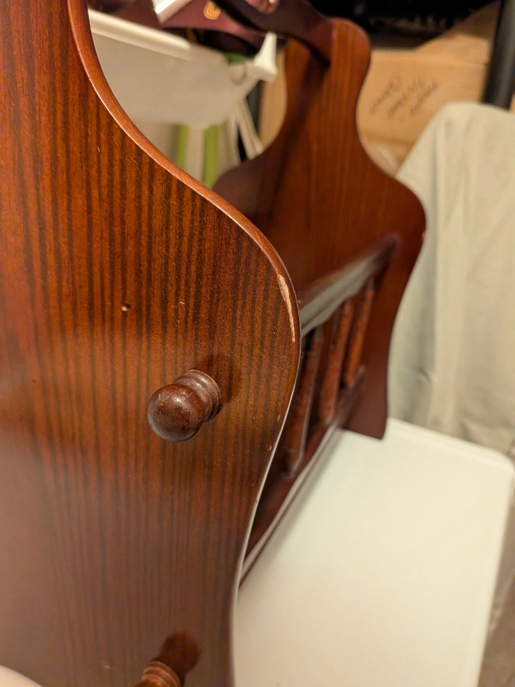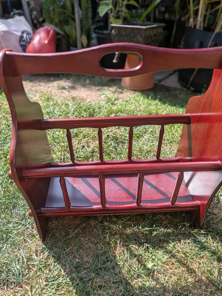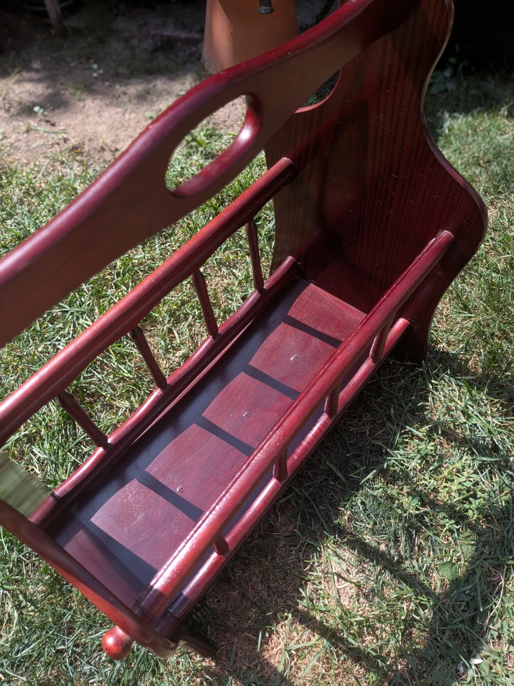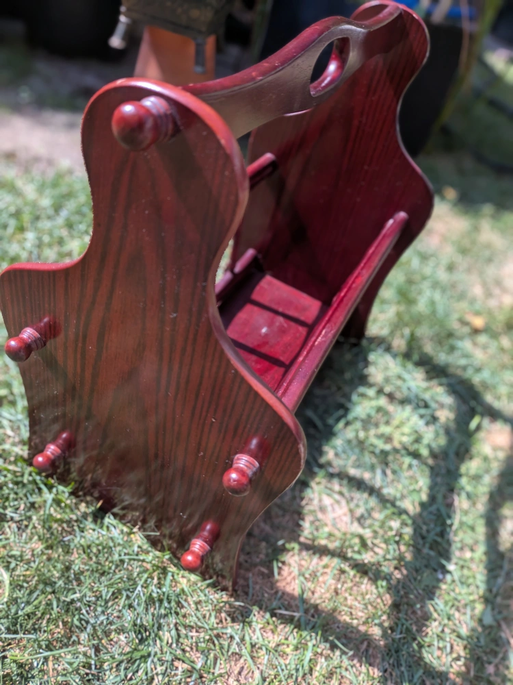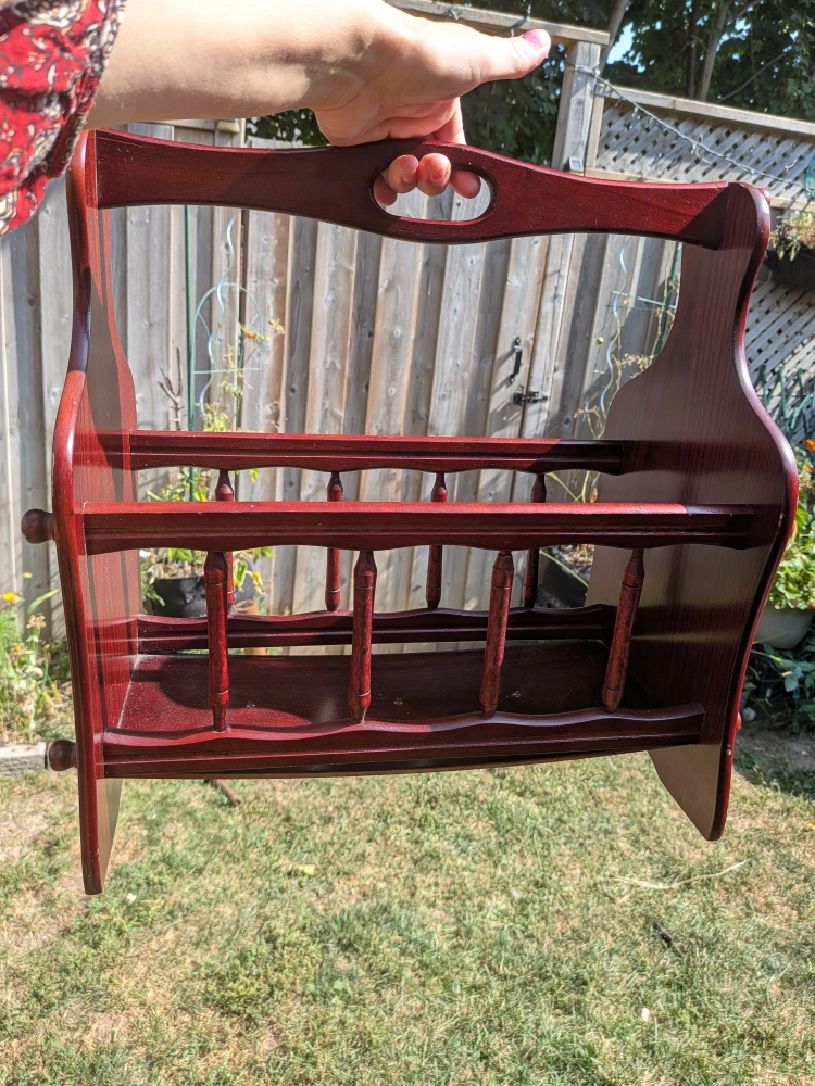 Here's a charming vintage wooden magazine rack, perfect for keeping your reading materials organized and adding a touch of classic style to your home! It's in great shape and ready to hold your favourite magazines or books Some wear, bottom a little warped, but still sturdy enough to hold items. Some scratches Measures approximately 15 x 15 x 9 inches Cash only, no etransfers Location: Rathburn and Renforth dr, near Etobicoke Olympium
