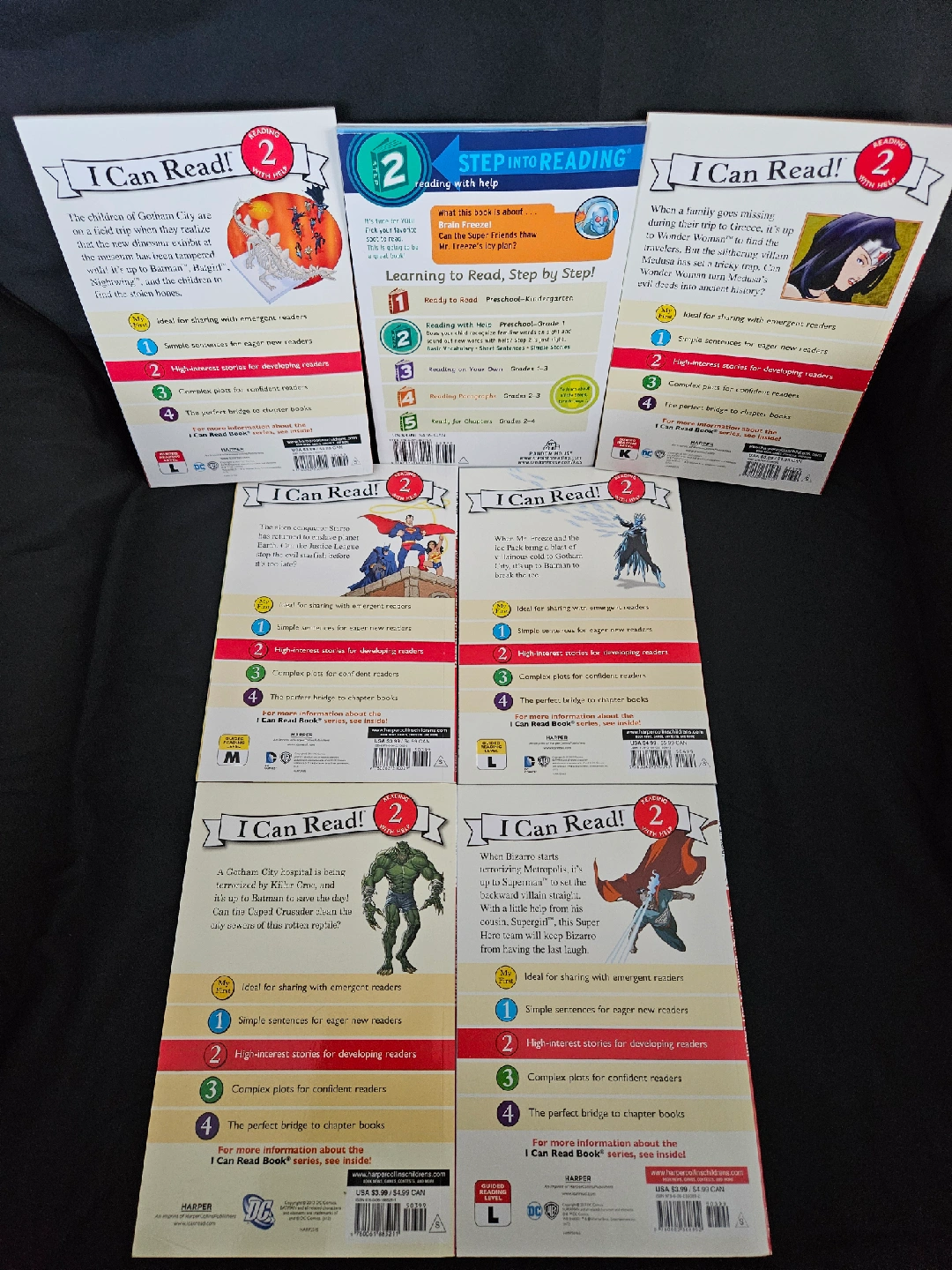 Price includes 7 Level 2 books featuring super heros. All are in excellent condition. The set includes: - Batman: Dino Dilemma - DC Super Friends: Brain Freeze! - Wonder Woman: Maze of Magic - Justice League: Attack of the Drones - Batman: Curse of the Mutant Wasteland - Batman: Reptile Rampage - Superman: Bizarro's Last Laugh Milton pick up, cash only, no holds.
