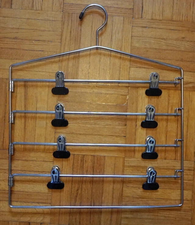Hang 4 skirts or 4 pairs of pants on one hanger. Great condition, smoke & pet-free home. If you see this ad the item is still available.