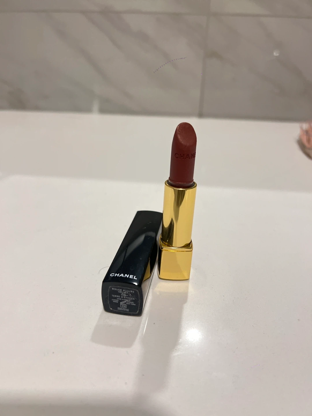 Selling a Chanel Rouge Allure Velvet lipstick in the shade Terre D'Étoiles! It's a beautiful colour and the packaging is so chic