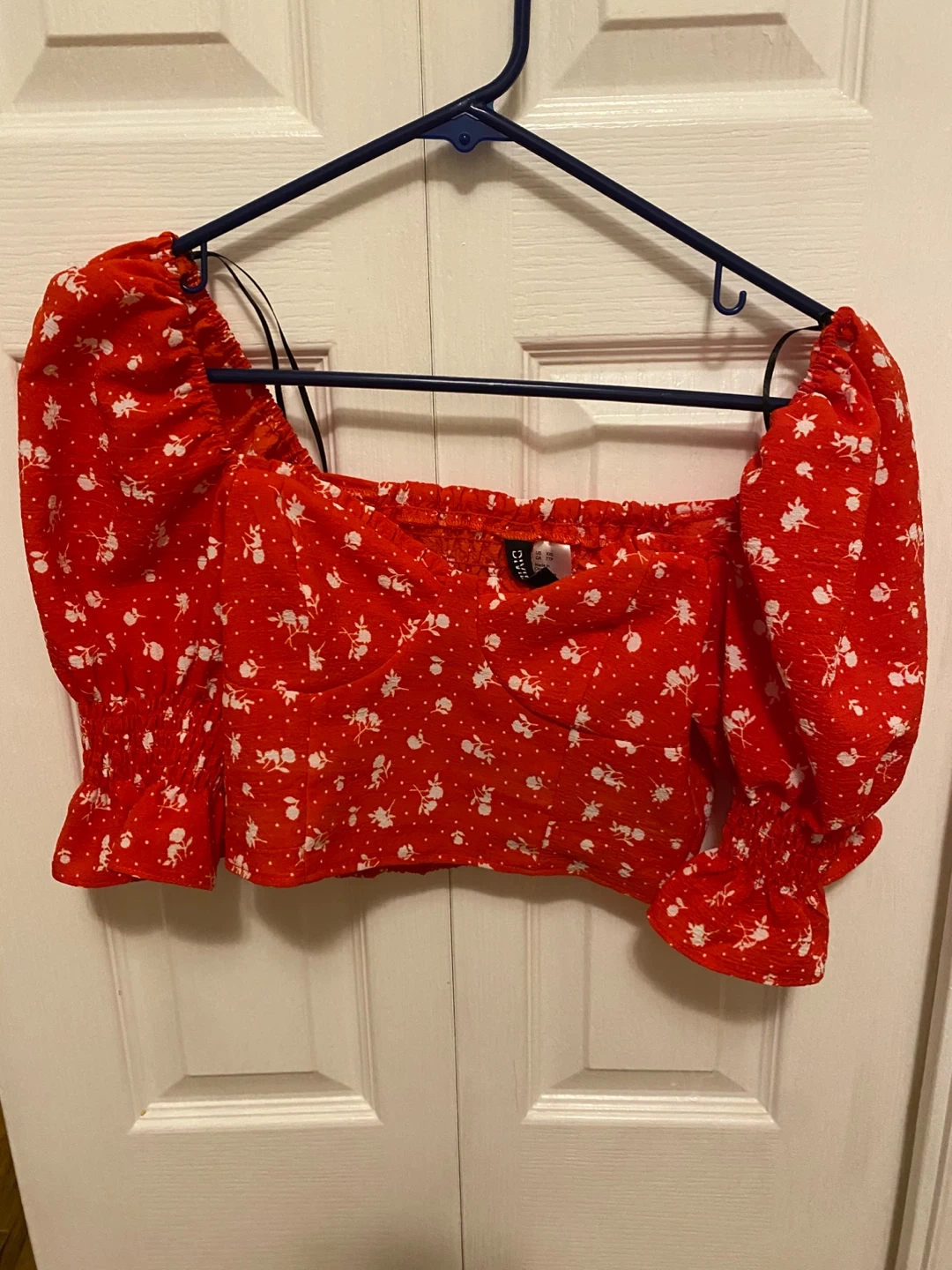 Selling a cute red floral top from Divided. It's a size XXS and in great condition.