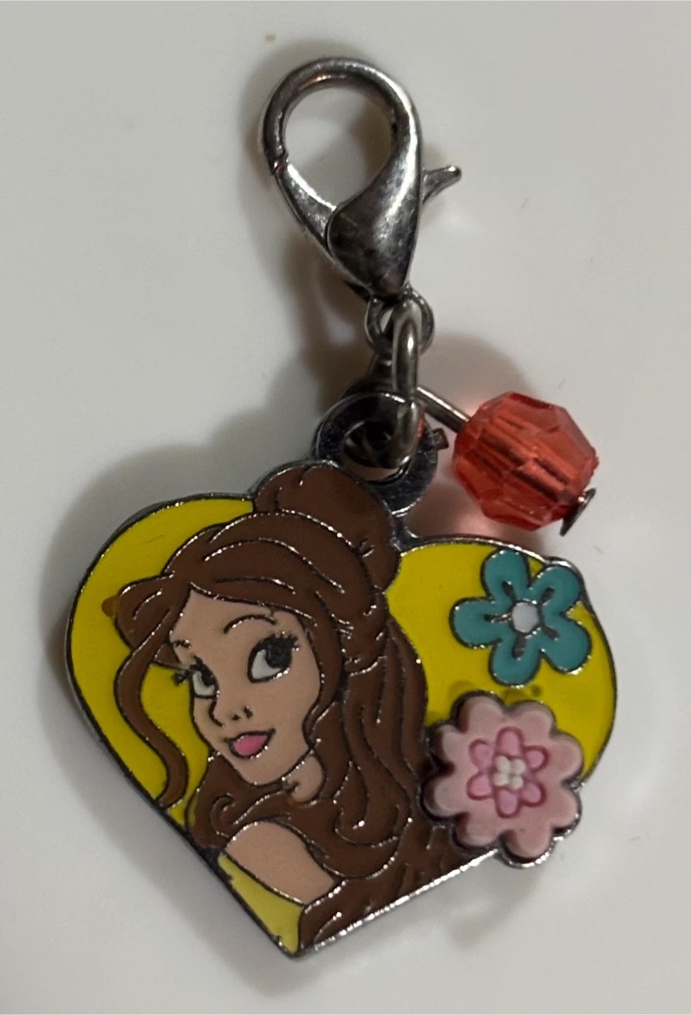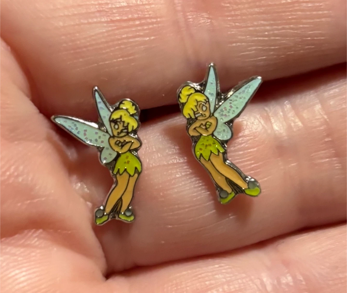 A collection of Disney-themed earrings and charms! Includes Tinkerbell earrings, a Belle charm, and a Chip and Dale charm Charms $5.00 each Tinkerbell earrings $10.00 These are all from Disneyland Pink, red & turquoise earrings $2.00 each All as is, more info in photo
