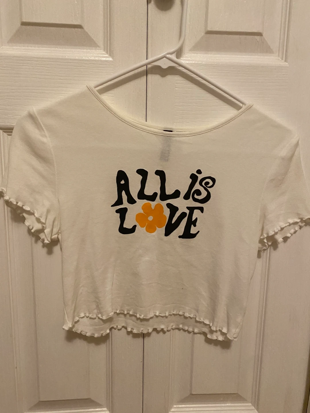 Cute H&M Divided white t-shirt with an "All is Love" graphic! It's a size small and in great condition