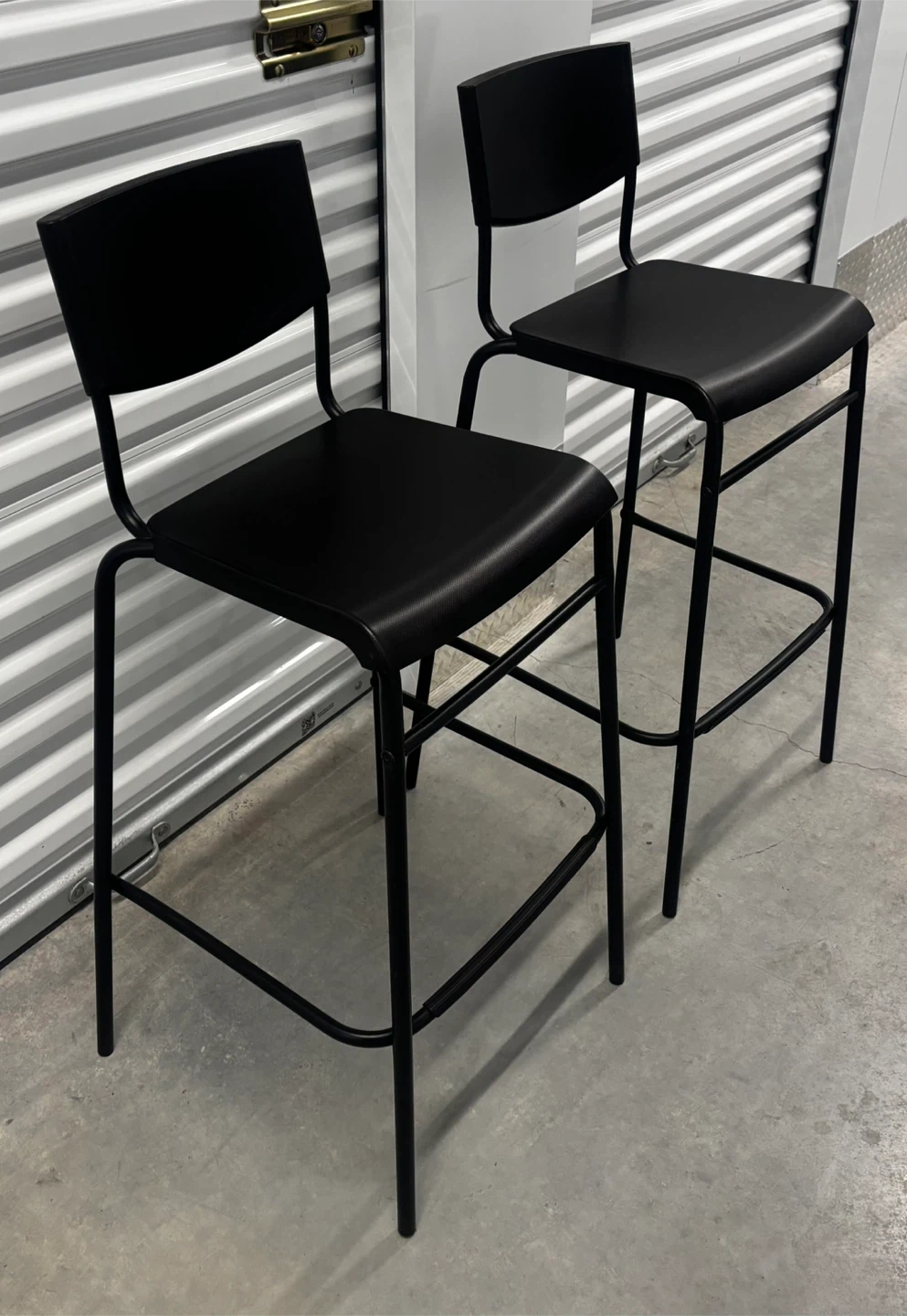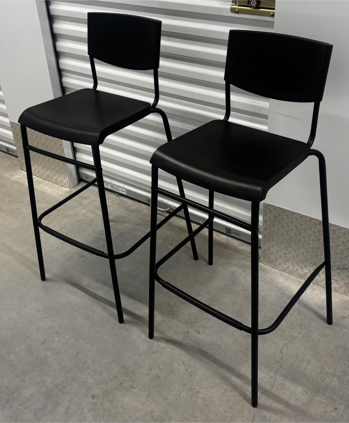 Set of 2 sleek black bar stools – modern style with metal frame, comfy backrest & footrest. ✔️ Durable + sturdy ✔️ Fits kitchen, dining, basement, or bar setup ✔️ Easy to clean 📏 Measurements: 13 ½ “ Wide 14” Length 39” Height 📍 Pickup in Oshawa 🚚 Delivery available (fee based on location) 💵 Cash or EMT accepted 🤝 Open to offers 🚫 No holds without deposit