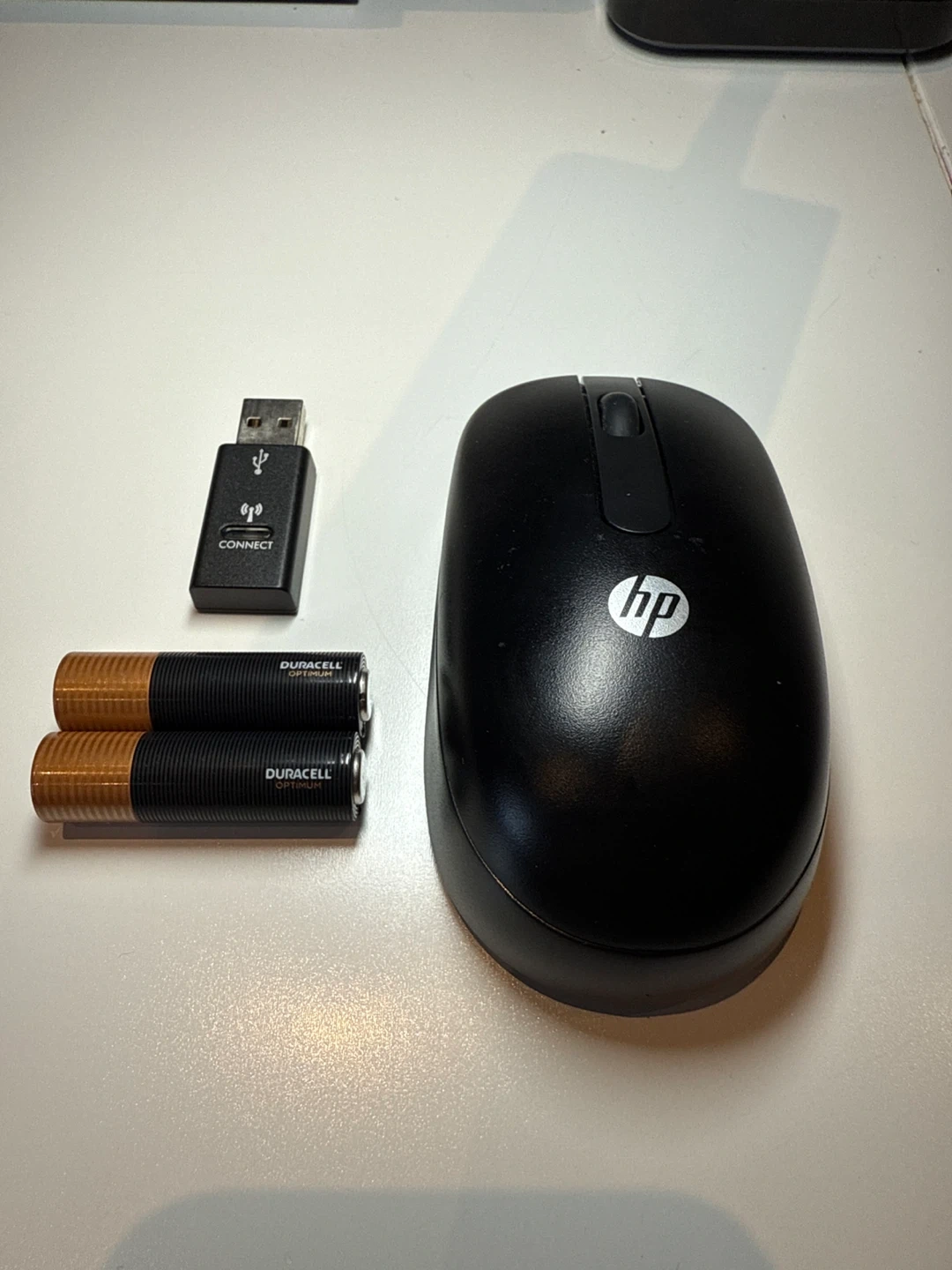 Selling a HP wireless mouse. It comes with a USB connector and Duracell batteries. Ready to connect and use!