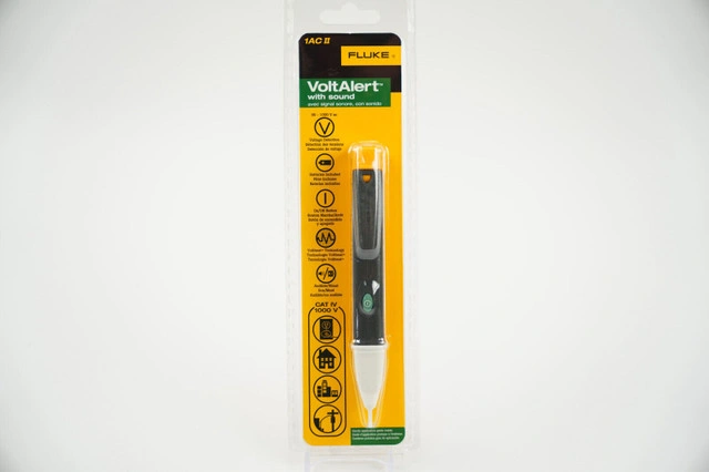 Fluke 1AC-A1-II VoltAlert Non-Contact Voltage Tester, Pocket-Sized, Voltage Detection Range 90 V to 1000 V AC, Audible Beeper, Silent Mode, Includes Batteries And 2 Year Warranty, CAT IV 1000 V Rating Voltbeat technology and continuous self-test - so you always know it is working Upon detection, tip glows and beeper sounds CAT IV 1000 V for added protection. New condition.