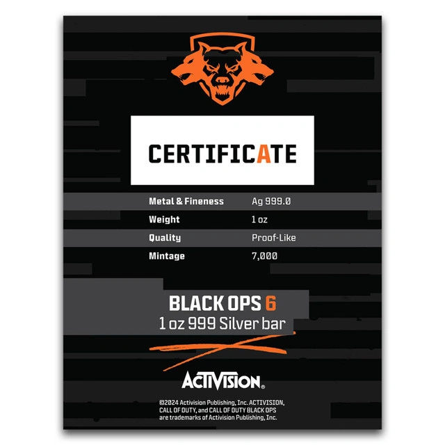 2025 PAMP Suisse Call of Duty Black Ops 1oz Proof Colored Silver Bar! (7,000 Mintage) Comes in pouch, Assay, and an in-game bonus code!
