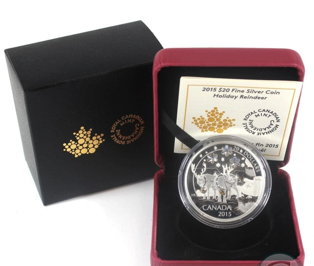 2015 1oz Fine silver Proof $20 Holiday Reindeer with crystal elements. Comes with box and COA. Condition: New. More Info: Other. For Sale By: Owner. Cash accepted.