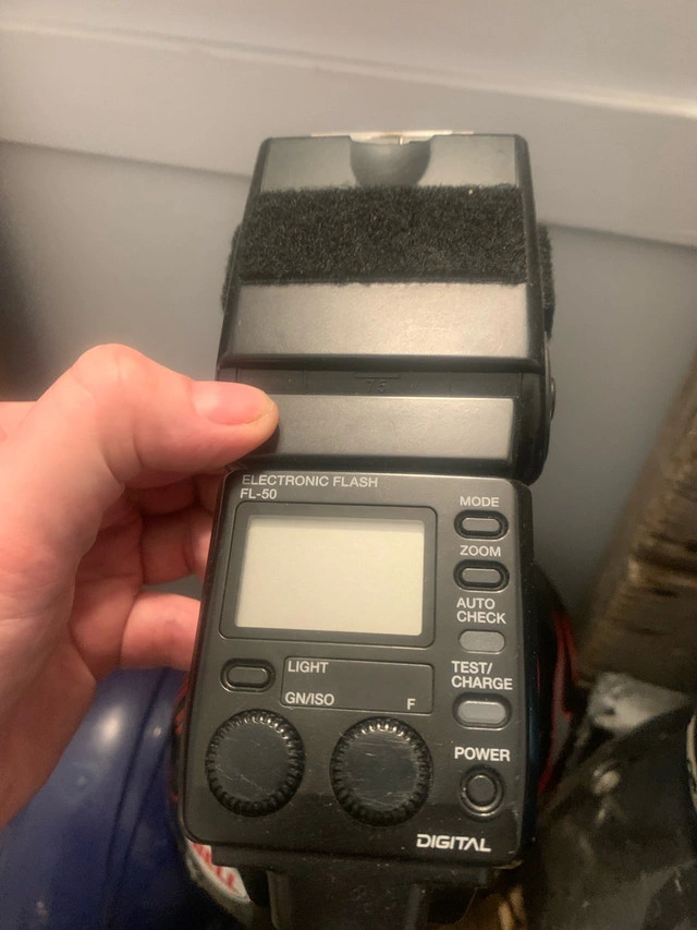 Enhance your photography with this Olympus FL-50 electronic flash, offering versatile lighting options for various shooting scenarios. This flash is in used condition and ready to bring some light into your life. It's like having a portable sunbeam at your fingertips, minus the sunburn! * Model: FL-50 * Type: Electronic Flash Don't miss out on this chance to add a reliable flash to your camera gear. If the ad's still up, the flash is still up for grabs!