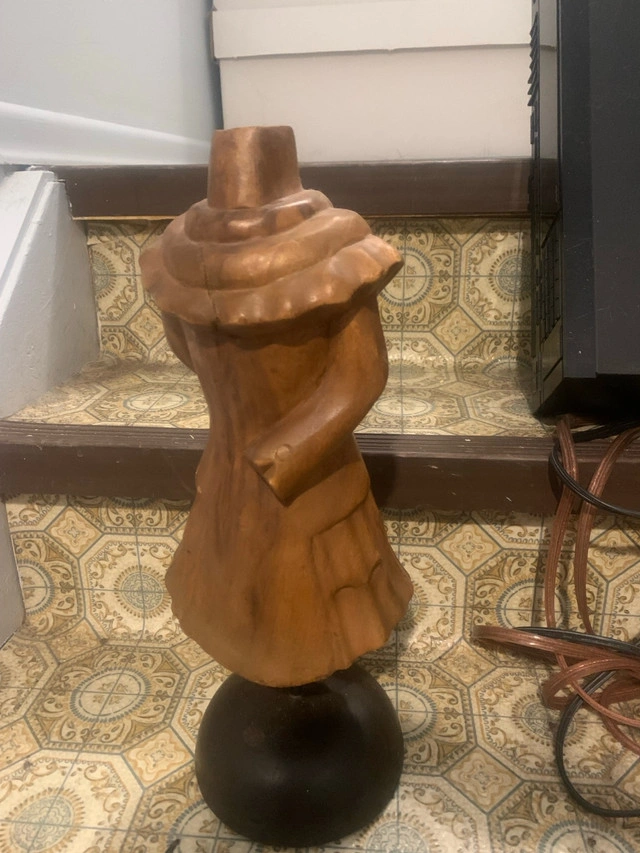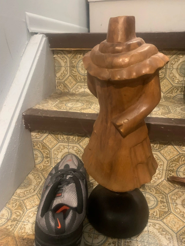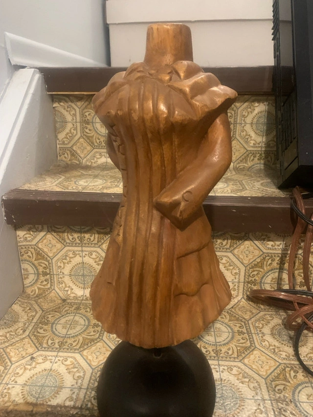 This is a solid wood female form statue, perfect for displaying jewels or adding a touch of beauty to any room. As you can see it is in used condition. A unique piece to add to your decor. This statue has a smooth finish, highlighting the natural grain of the wood. It is ideal for showcasing necklaces, bracelets, or other small accessories, or simply as a decorative art piece. If the ad is up, it's still available! Will consider offers.