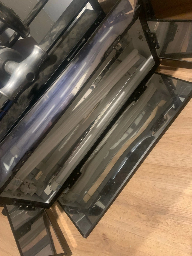This used (2) MedaLight FL-110 super heavy-duty film tripod and (2) light stands set is perfect for professional film-making. It includes two barn door lights with 5500 kino-Flo bulbs and 3 extra sets still in boxes. and a Manfrotto 028 professional tripod with Clicloc LC 244 air-cushioned supports. Features: * MedaLight FL-110 Barn Door Lights * Manfrotto 028 Tripod * Clicloc LC 244 Air Cushioned Light Stands This tripod and lighting equipment has been well-loved and is ready for its next project! If you want heavy duty and one complete solution values way over $1000, this is it. Perfect for documentary filmmakers, short directors or just anyone wanting to up their camera game. Kijiji priced the items pretty dang fair. 2 extra light stands 2 light box stand 2 light boxes 8 total real daylight 5500 kino Flo bulbs 1 massive camera tripod may need a plate, will hold 75 pounds and offers smooth pans and operation Value $1500 plus Asking $450 Complete lighting solution!!! If the ad is up, the item is available!