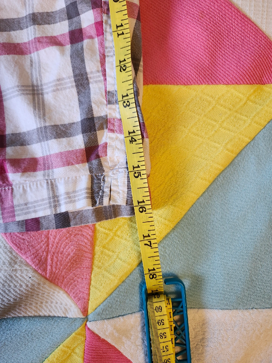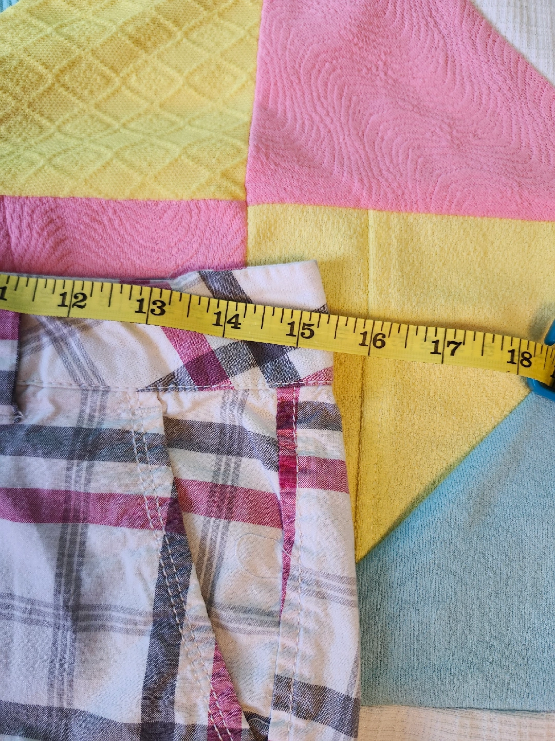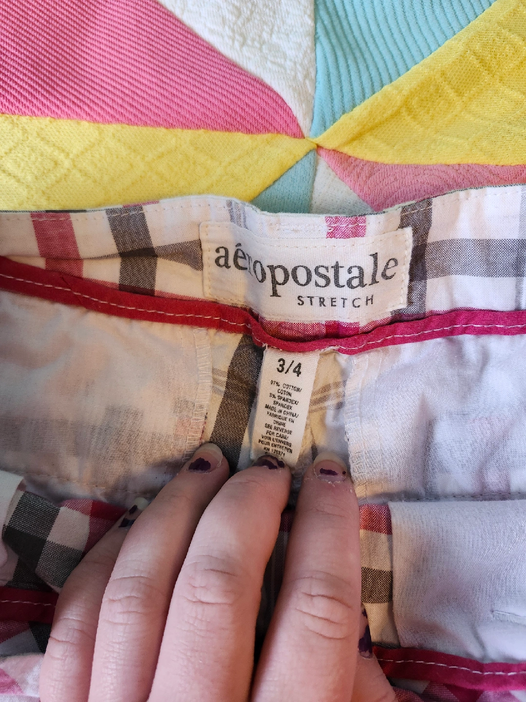White and pink plaid shorts the most perfect white/grey/pink plaid shorts by Aeropostale. low rise and a little on the long side label size 3/4, waist laying flat is 15.5in, length from top to bottom is just about 16in item is in good used condition with no flaws or stains that I could notice