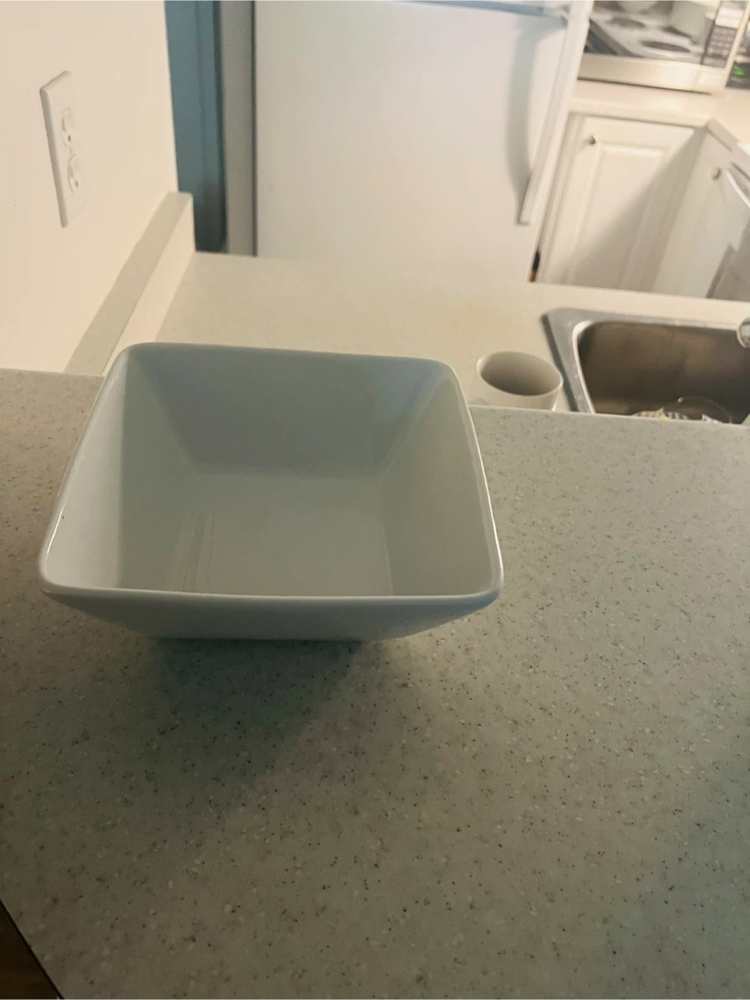 Selling a simple white square bowl. It's in great shape and ready for a new home! Perfect for serving snacks or using as a decorative piece