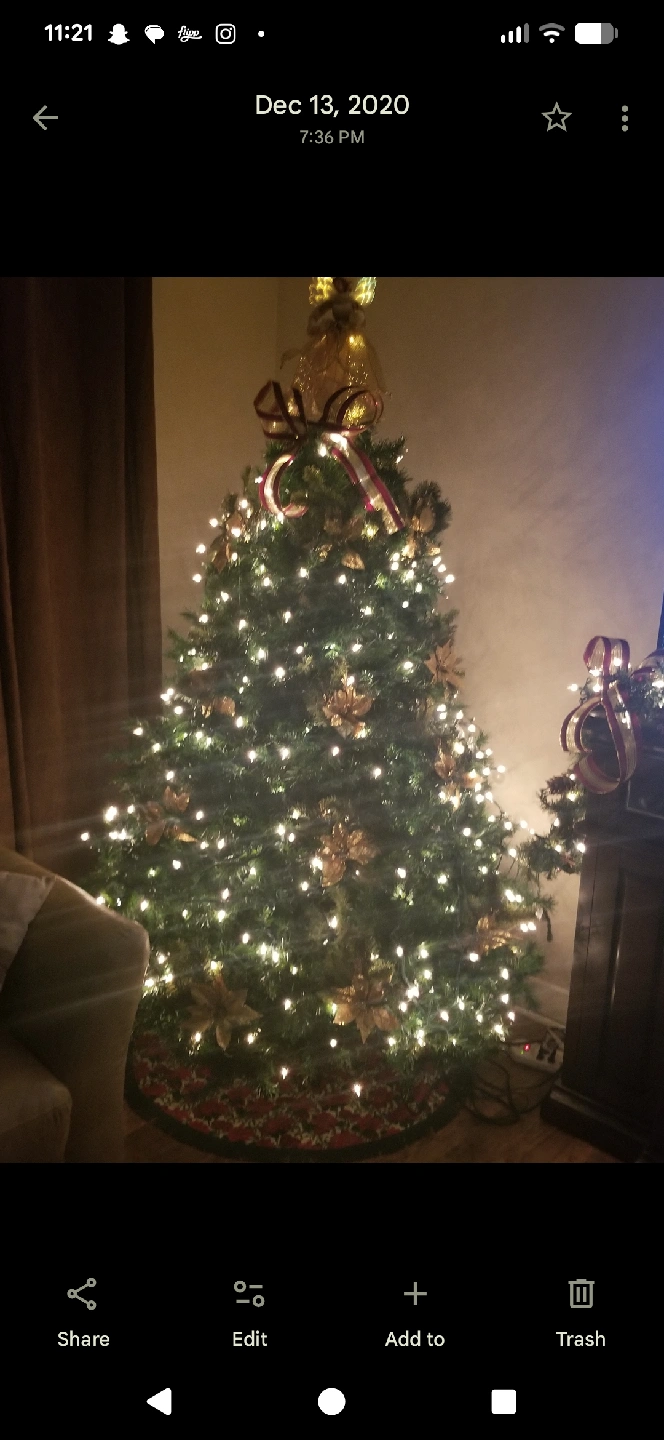 Selling a lovely Christmas tree, complete with lights and decorations. It's perfect for adding some festive cheer to your home during the holidays!