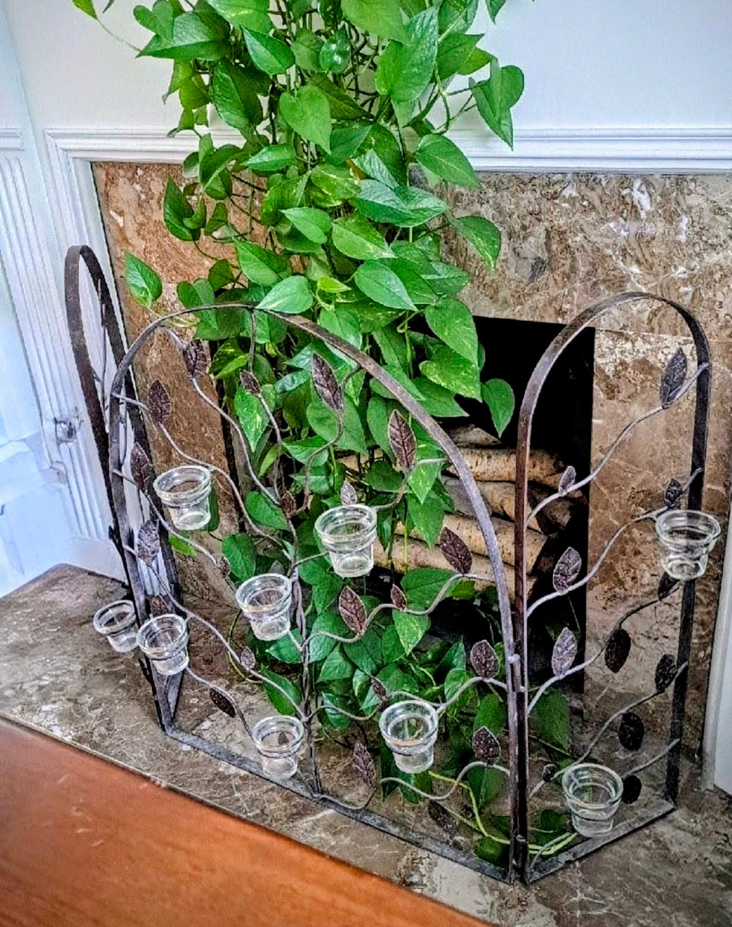 Fireplace screen with 10 glass tea light holders. 33" in height and 36" in width Pickup in the Beaches. Queen St E., just west of Victoria Park