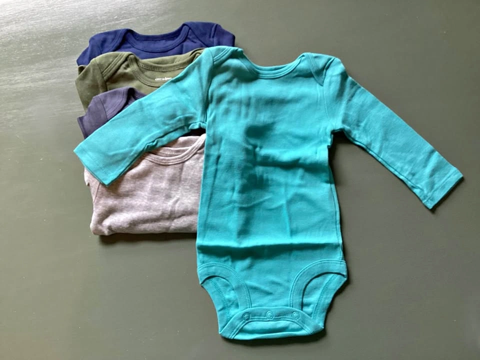 5 Brand New Simple Joy Long Sleeve Onesies Size 3 to 6 Months in colours as shown. Could be personalized with a cricut or fabric paint or used as is. Comes from a clean pet free home. $20 cash only. Pick up near Parliament and Bloor.
