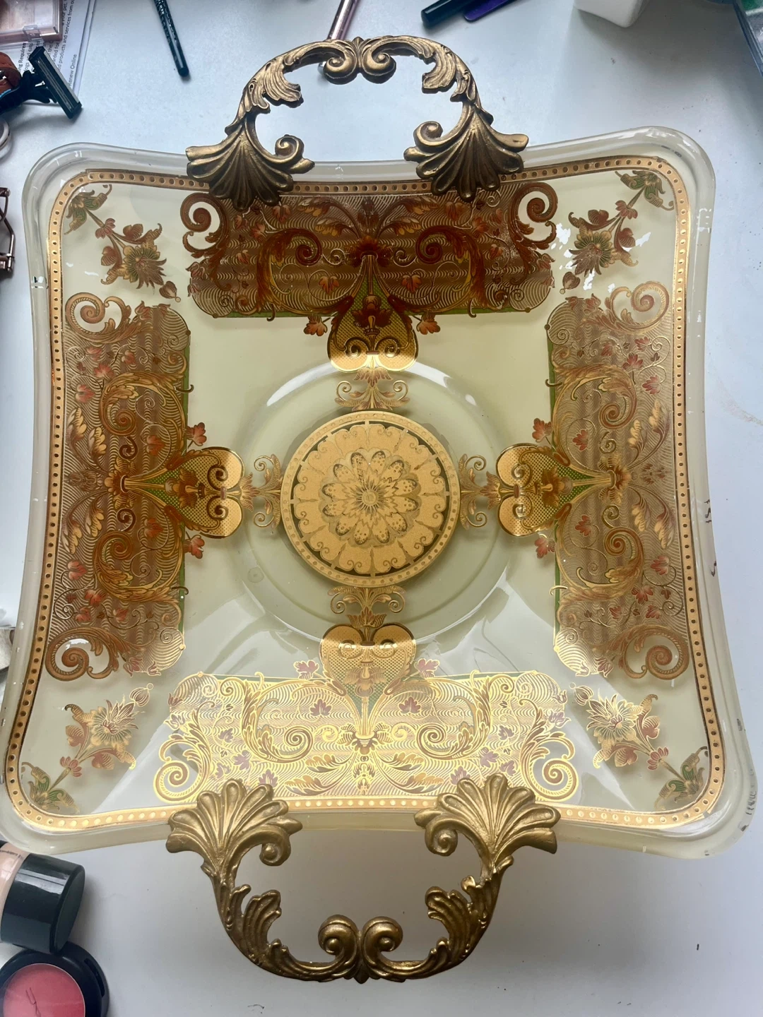 Vintage Decorative Glass Tray with Handles