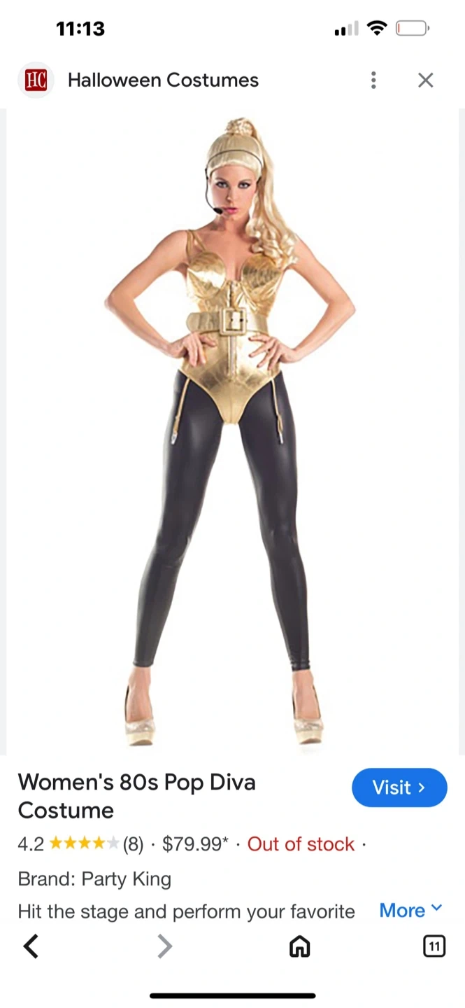 Get ready to hit the stage with this Party King Women's 80s Pop Diva Costume! Originally bought for $79.99, this costume is perfect for Halloween or any themed party. The brand is Party King. Don't miss out on the chance to perform your favourite hits!