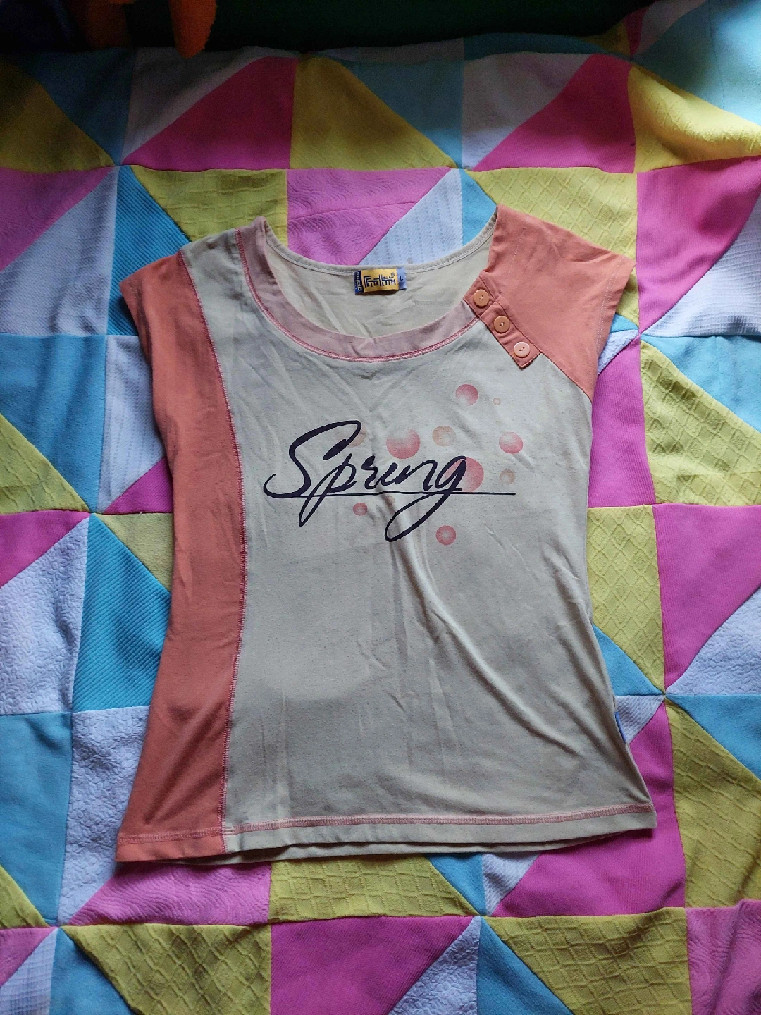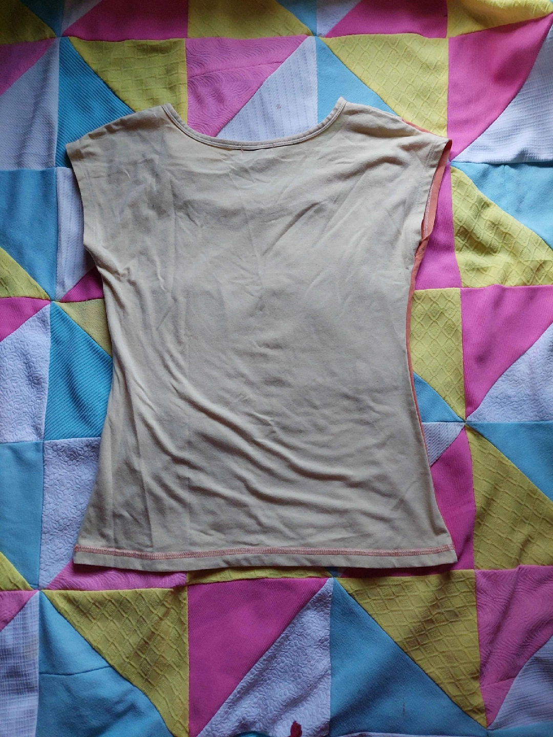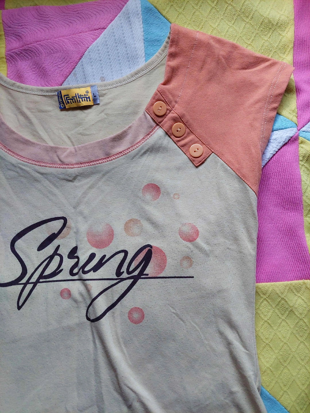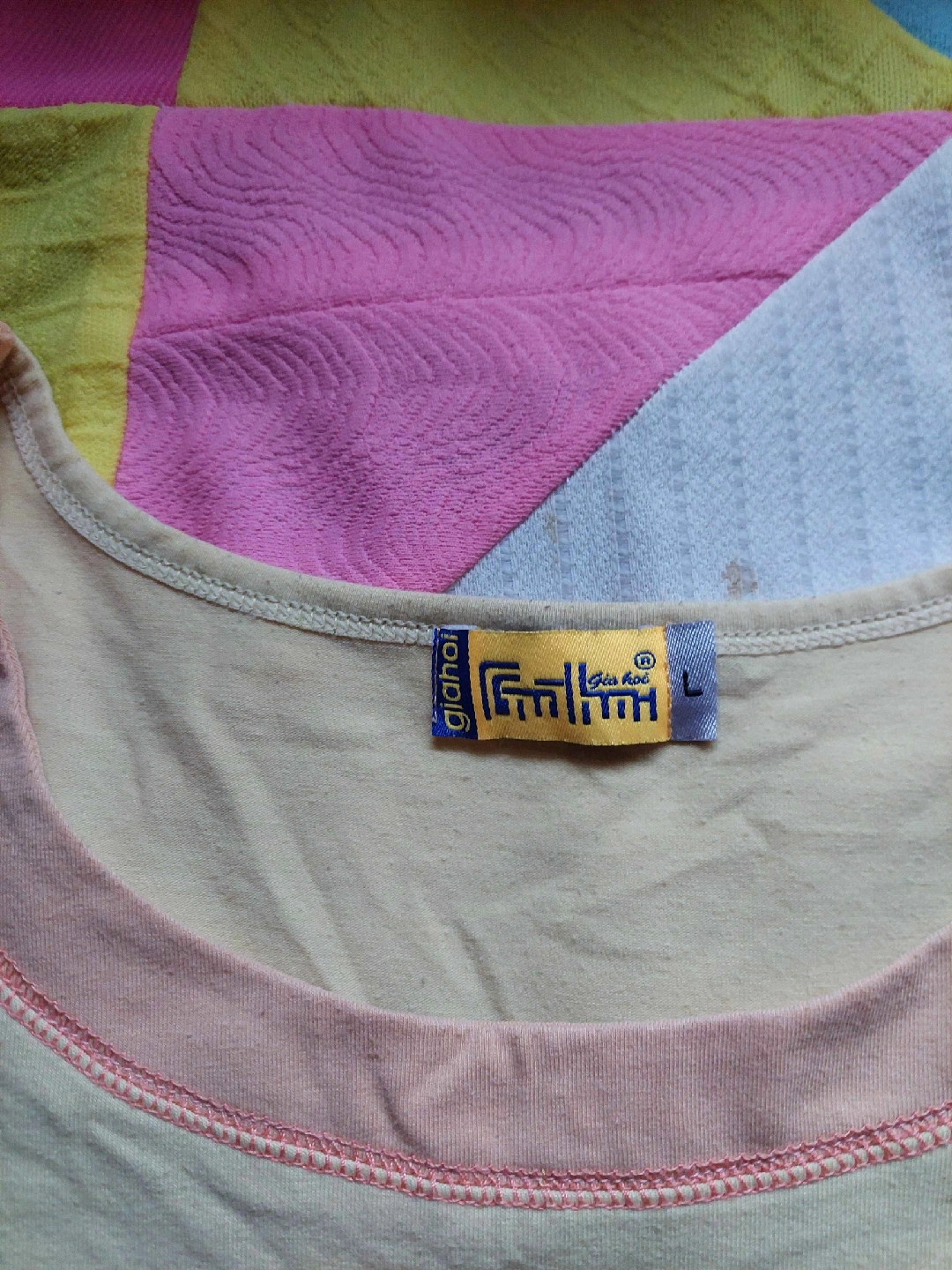 super cute 2000s t-shirt by the brand Giahoi (?). this shirt is so cool and unique, the button detail at the collar is so cool! label size L, measurements laying flat are: pit to pit 16in, shoulder to bottom is just under 22in item is in okay used condition. there is some pilling all over the shirt, the worst is picture in picture