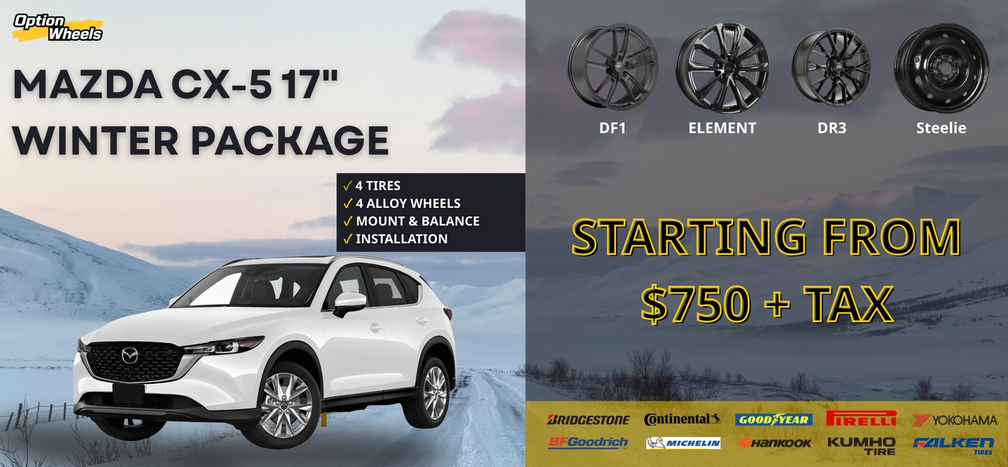 ❄️ Winter-ready packages for Mazda CX-5. 💰 Price Range: $750 – $1730 + Tax ✔️ 4 Wheels + 4 Winter Tires – Balanced & Mounted ✔️ FREE In-Shop Installation (Oakville) ✔️ GTA Mobile Service – $100 Highlights: Wheels: RS DR3, RS DF1, DAI Element, Steelie Tires: Michelin X-ICE Snow, Uniroyal Tiger Paw, Mirage MR-W562, Continental IceContact XTRM 📍 Option Wheels – Oakville, ON 📲 DM @optionwheels_ for Mazda CX-5 winter packages today!