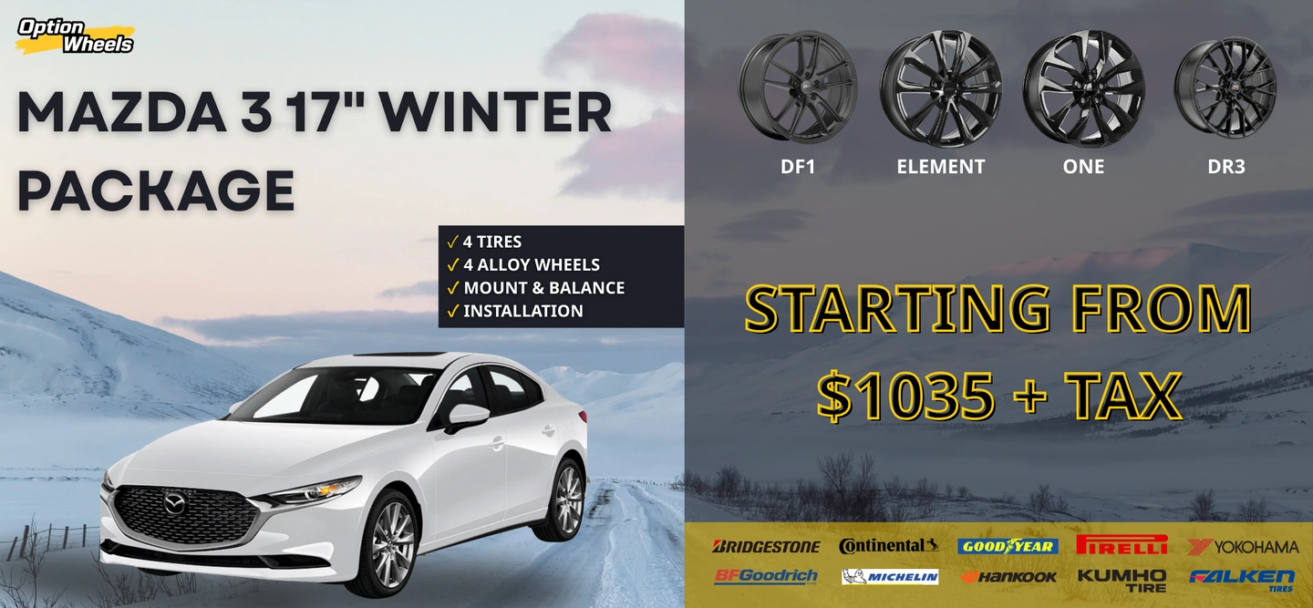 ❄️ Reliable Mazda3 winter wheel & tire combos. 💰 Price Range: $1035 – $1800 + Tax ✔️ 4 Wheels + 4 Winter Tires ✔️ FREE Oakville Install ✔️ GTA Mobile +$100 Highlights: Wheels: RS DR3, RS DF1, DAI Element, DAI ONE Tires: Michelin X-ICE Snow, Uniroyal Tiger Paw, Mirage MR-W562, Continental IceContact XTRM 📍 Option Wheels – Oakville, ON 📲 DM @optionwheels_ for Mazda3 winter packages today!