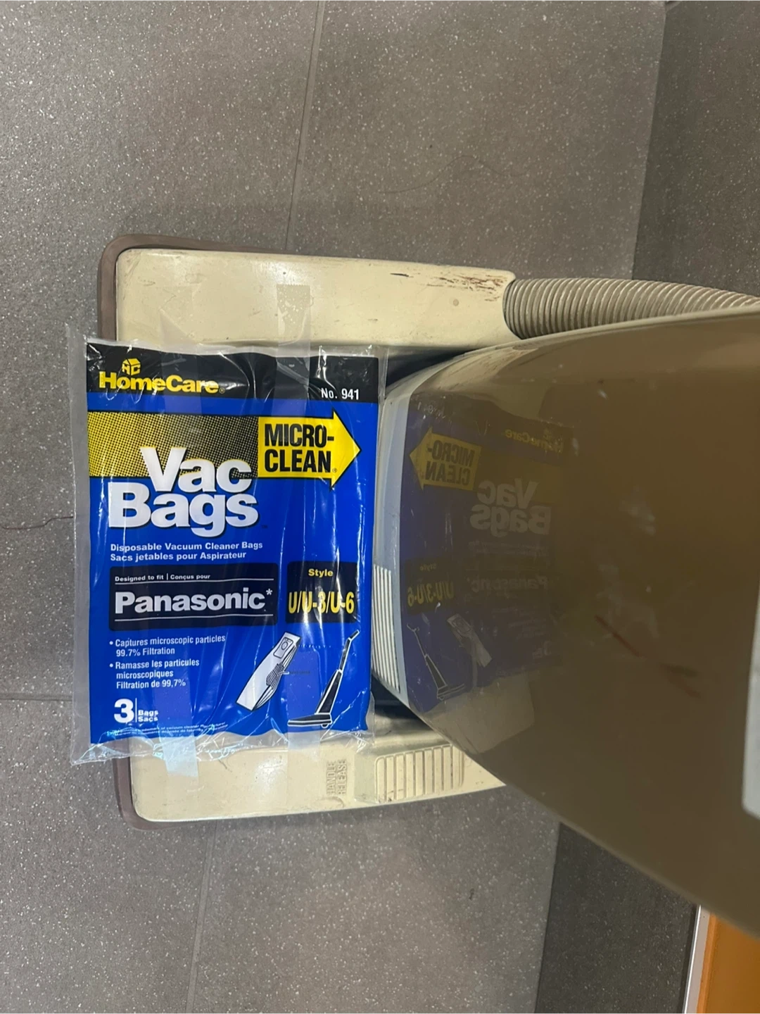 Selling a Panasonic MC-811 vacuum cleaner. It comes with HomeCare Vac Bags that are micro-clean and designed for Panasonic U-3/U-6 models. The bag captures microscopic particles and removes dust effectively