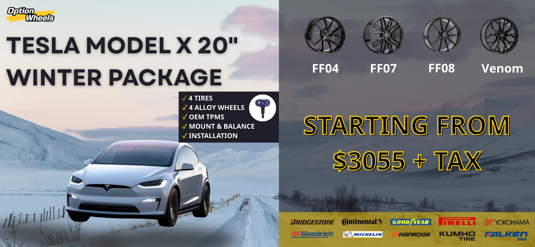 ๐ Premium EV SUV winter-ready sets. ๐ฐ Price Range: $3020 โ $3595 + Tax โ๏ธ 4 Wheels + 4 Winter Tires โ Balanced & Mounted โ๏ธ FREE Oakville Install โ๏ธ GTA Mobile Service โ $100 Highlights: Wheels: OPE FF04, OPE FF07, OPE FF08, OPE Venom Tires: Michelin X-ICE Snow, Pirelli Sottozero, Continental, Bridgestone ๐ Option Wheels โ Oakville, ON ๐ฒ DM @optionwheels_ for Tesla Model X winter packages today!