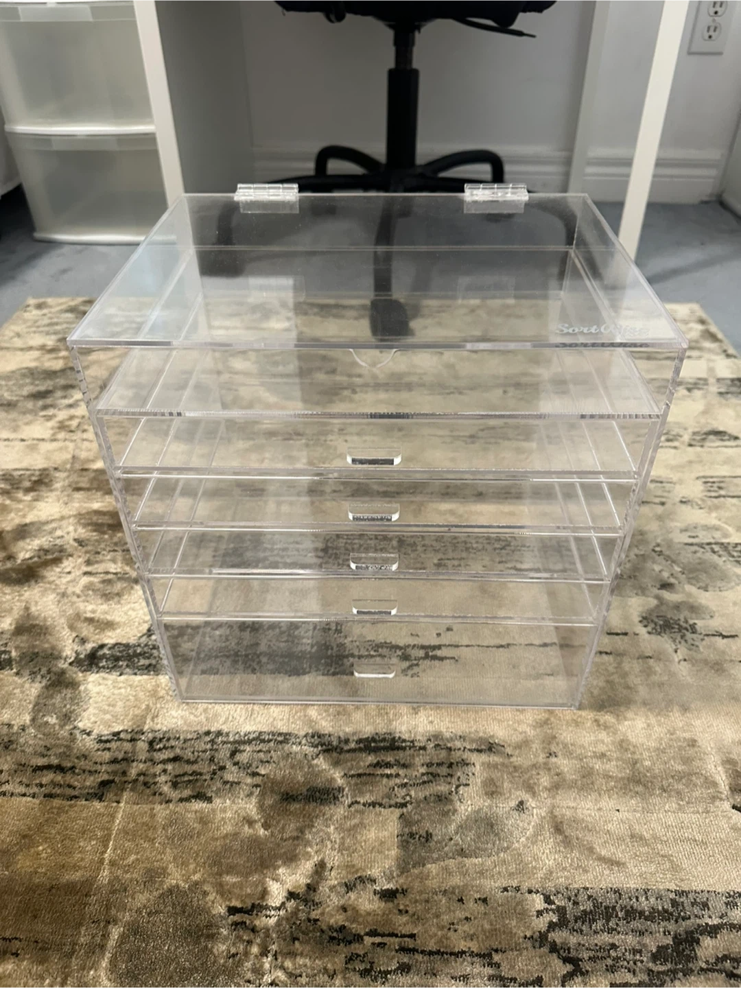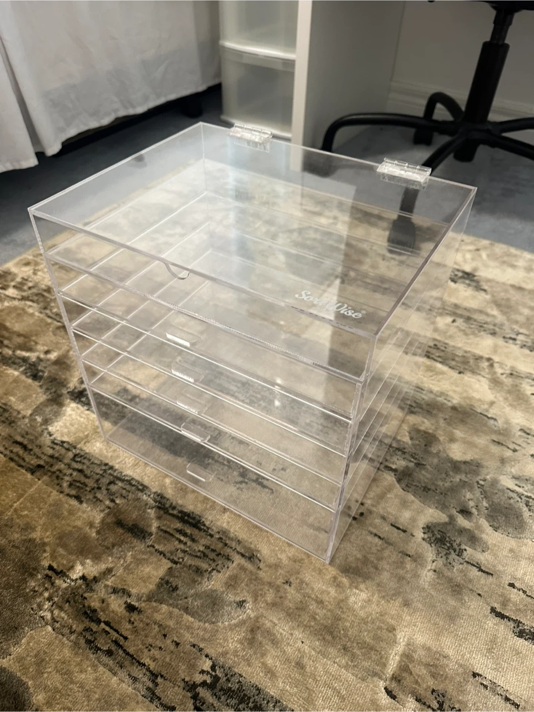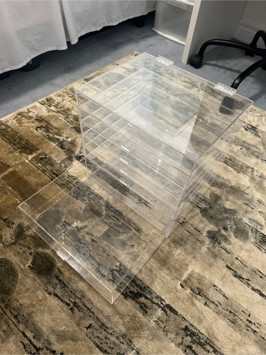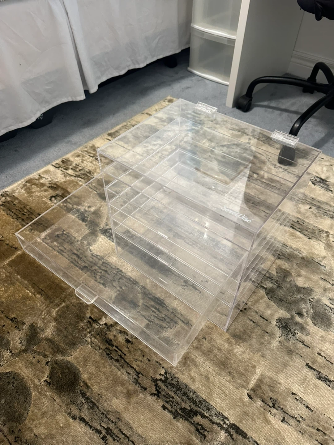 Selling a makeup organizer. It's in good condition and perfect for keeping your cosmetics tidy and accessible!