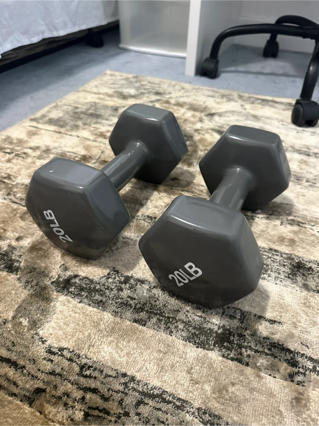 Selling a pair of 20LB dumbbells. They are in good condition and ready for your home workouts!