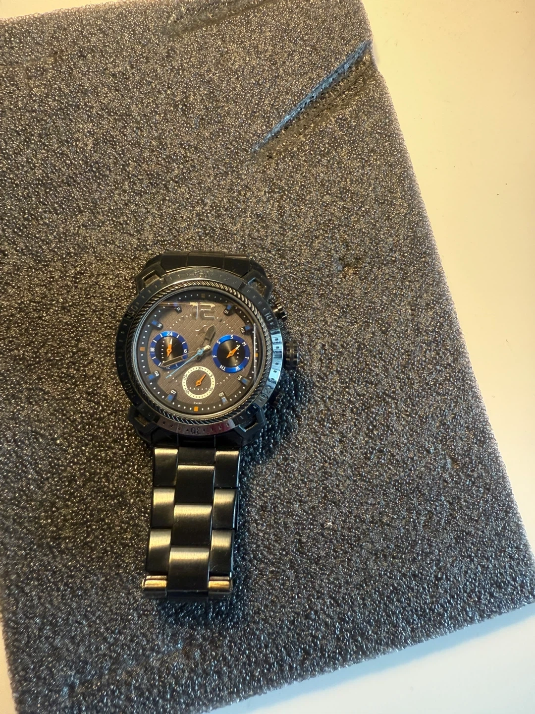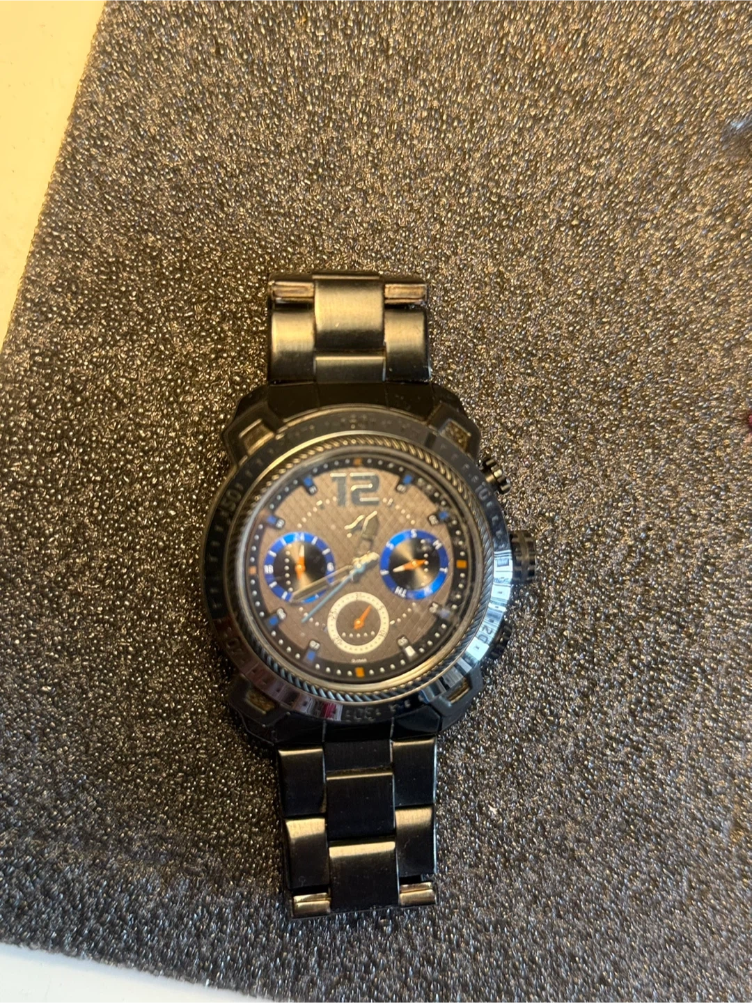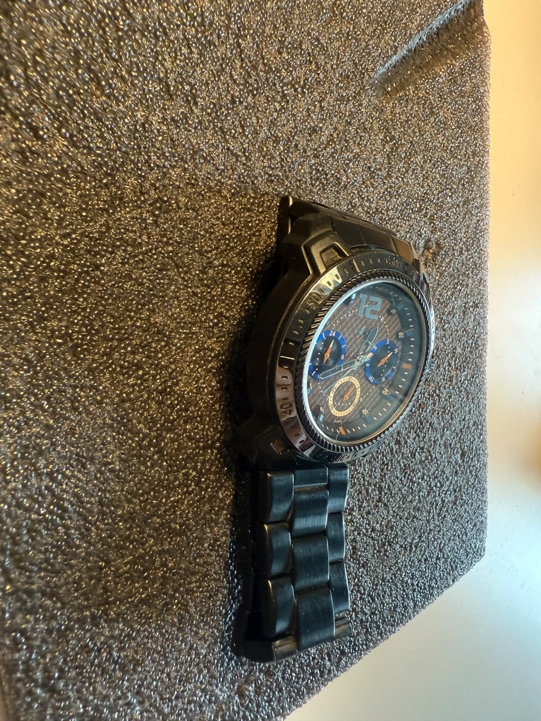• Brand: Fastrack (Titan Group) • Condition: Used – Like New • Features: Stylish black stainless steel, sporty blue sub-dials, durable build 🛒 Market Price: $70+ 💰 My Price: $40