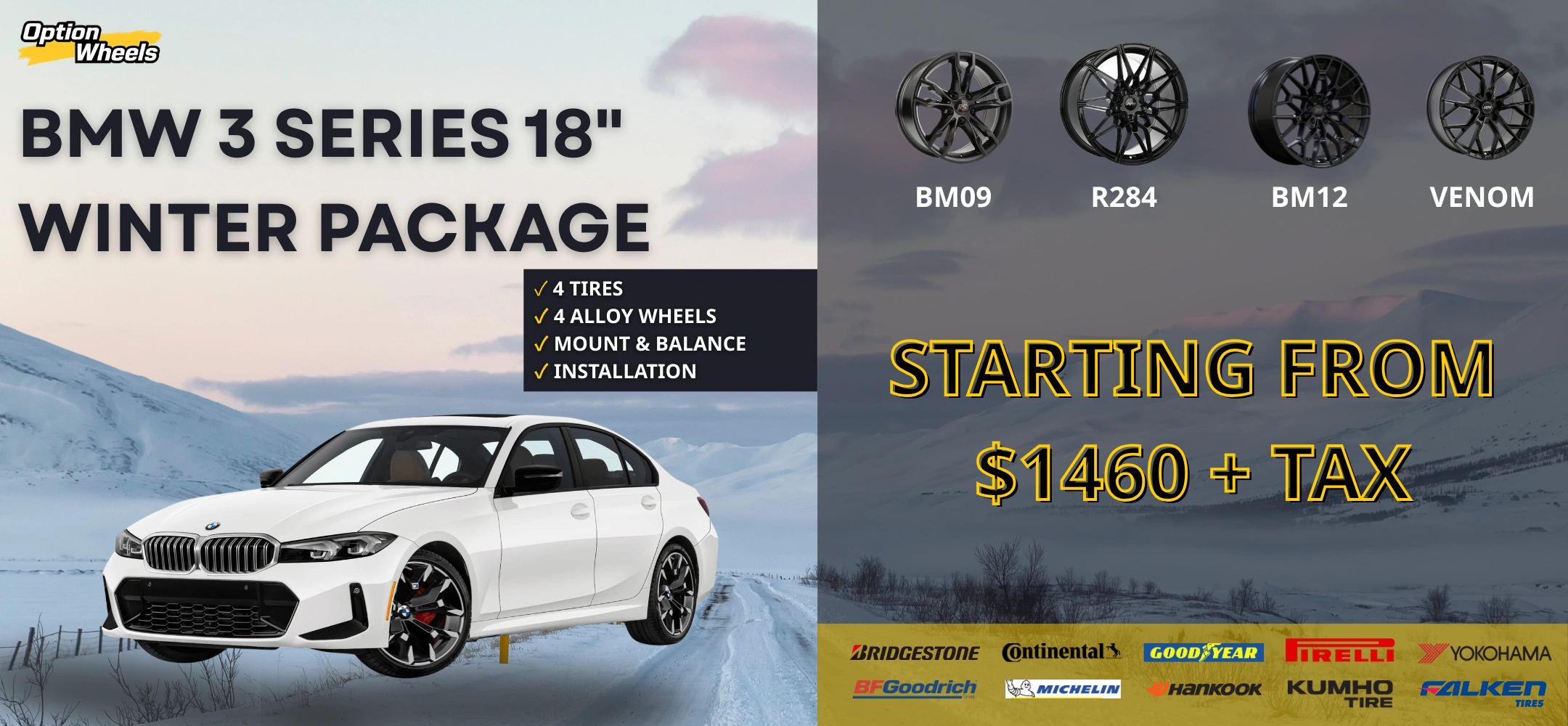 โ๏ธ Winter-ready sets for BMW 3 Series. ๐ฐ Price: Starting from $1460 + Tax โ๏ธ 4 Wheels + 4 Winter Tires โ Balanced & Mounted โ๏ธ FREE In-Shop Installation (Oakville) โ๏ธ GTA Mobile Service โ $100 Highlights: Wheels: RS BM08, DAI R284, RS BM12, OPE Venom Tires: Michelin X-ICE SNOW, Continental VikingContact 8, General Altimax Arctic 12, Hankook Winter i*Cept IZ3 ๐ Option Wheels โ Oakville, ON ๐ฒ DM @optionwheels_ for BMW 3 Series packages today!