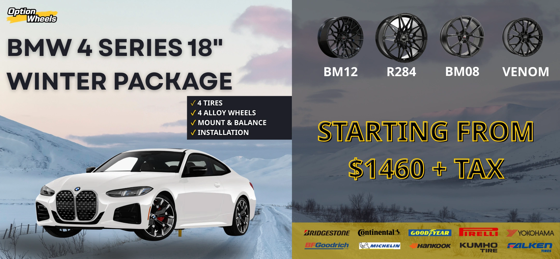 โ๏ธ Full winter sets for BMW 4 Series. ๐ฐ Price: Starting from $1460 + Tax โ๏ธ 4 Wheels + 4 Winter Tires โ Balanced & Mounted โ๏ธ FREE In-Shop Installation (Oakville) โ๏ธ GTA Mobile Service โ $100 Highlights: Wheels: RS BM08, DAI R284, RS BM12, OPE Venom Tires: Michelin X-ICE SNOW, Continental VikingContact 8, General Altimax Arctic 12, Hankook Winter i*Cept IZ3 ๐ Option Wheels โ Oakville, ON ๐ฒ DM @optionwheels_ for BMW 4 Series packages today!